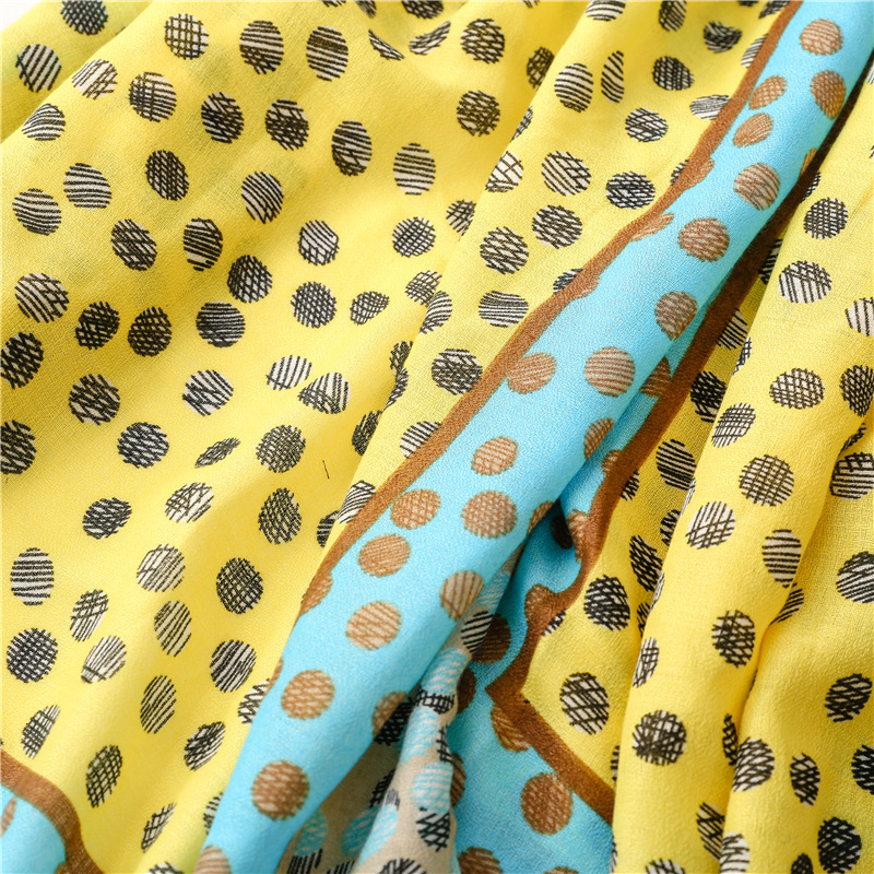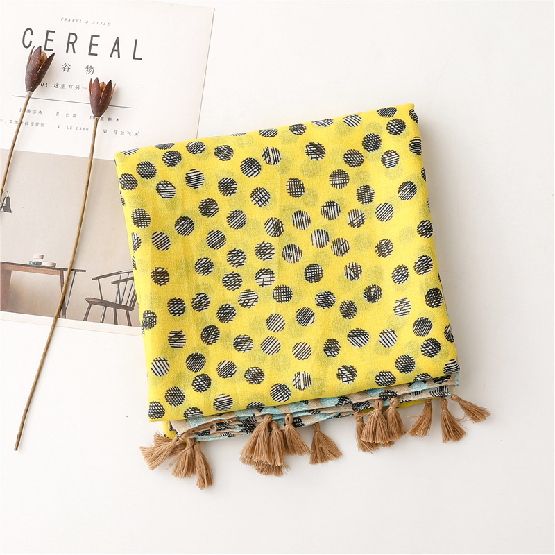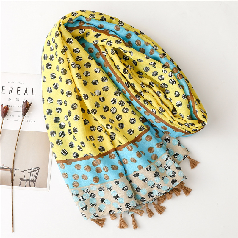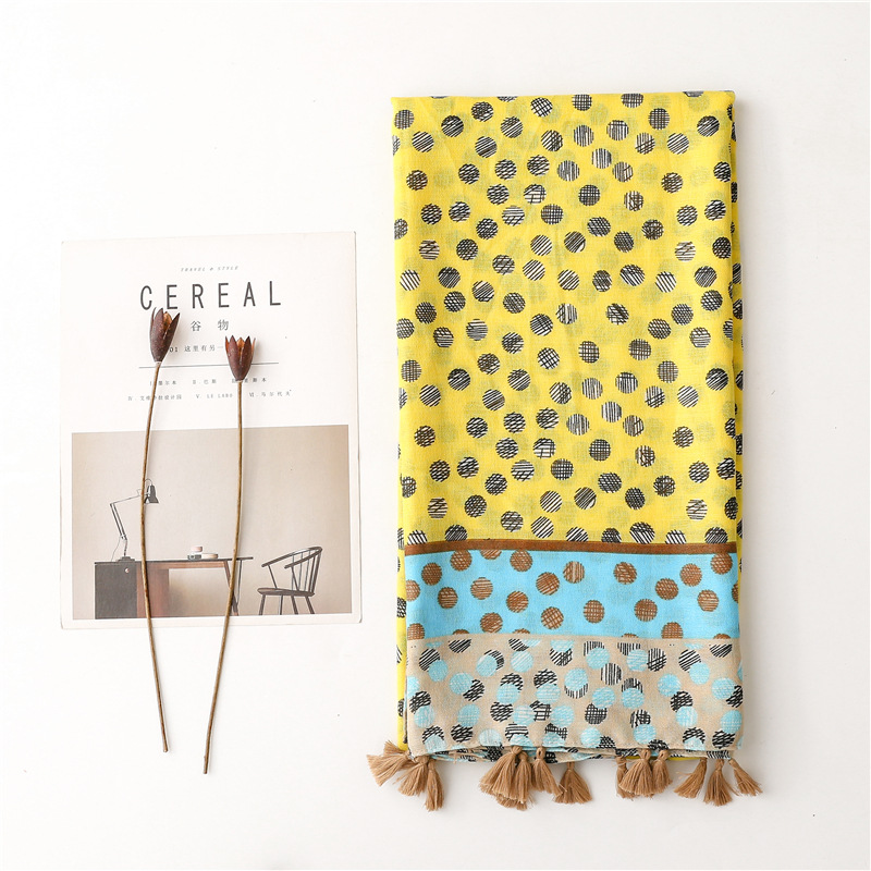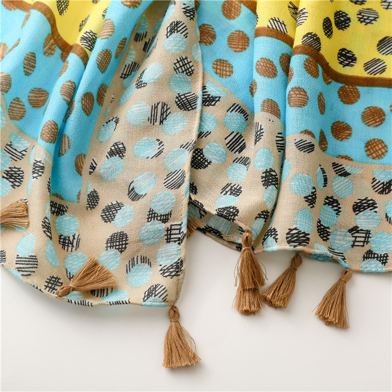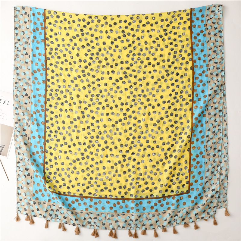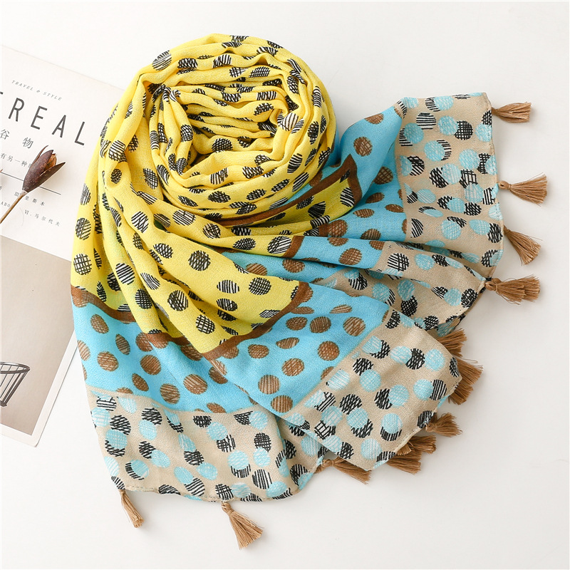 All-match ins yellow and blue polka dot scarf long tassel