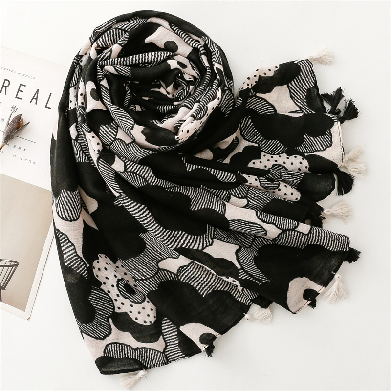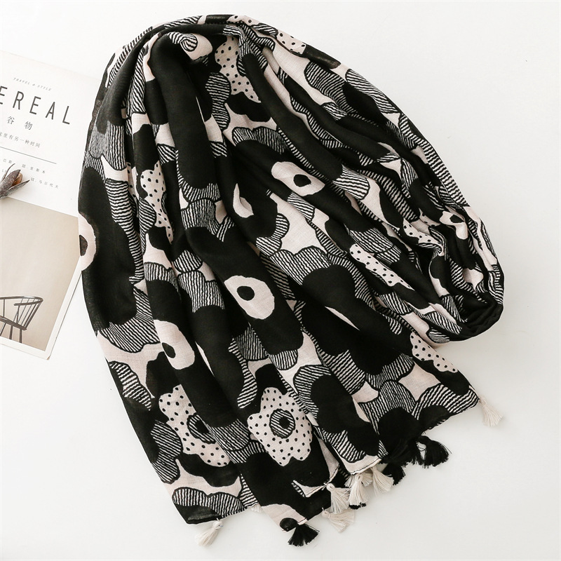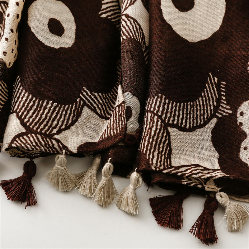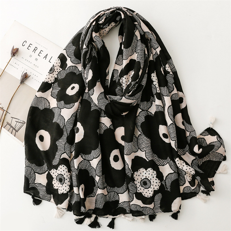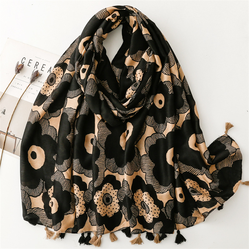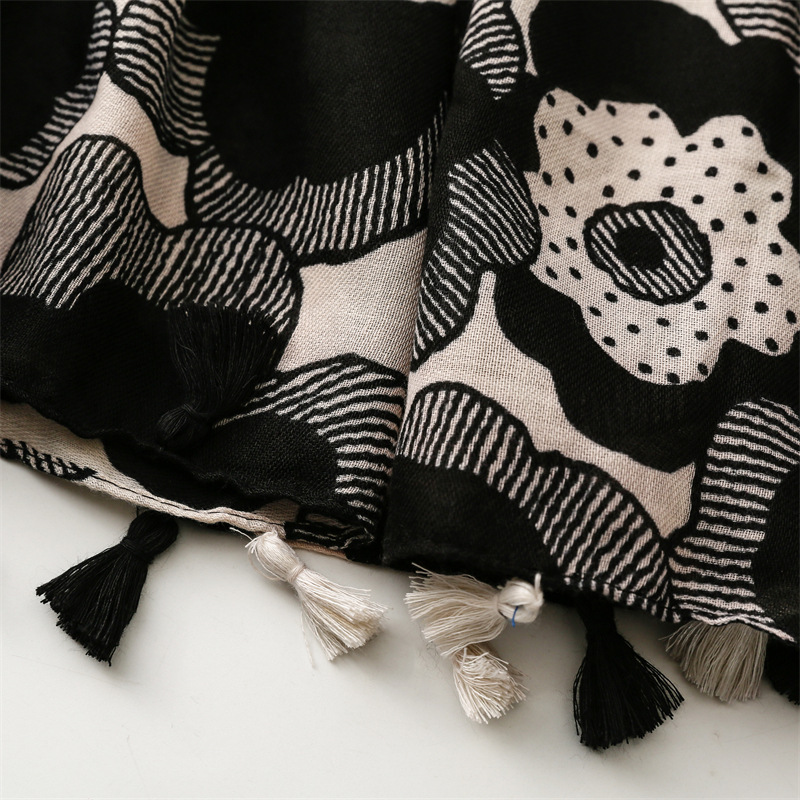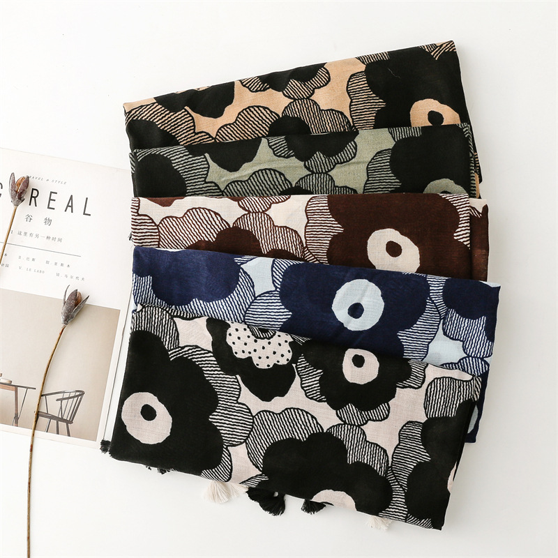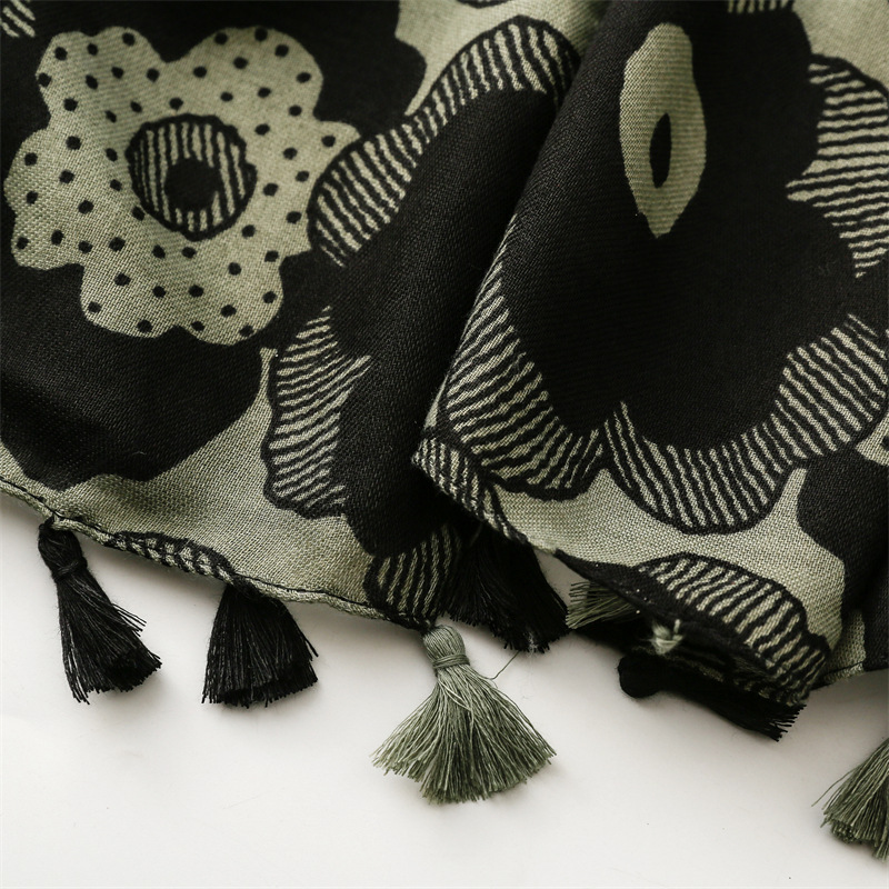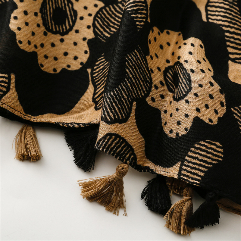 Autumn and winter thickened soft Dutch floral handmade tassel scarf