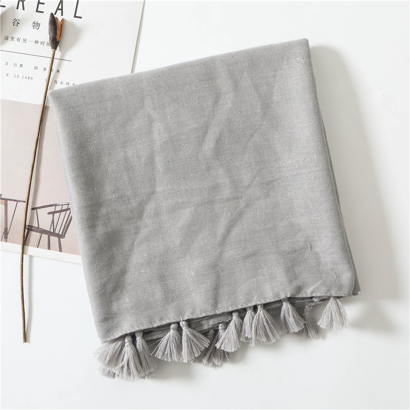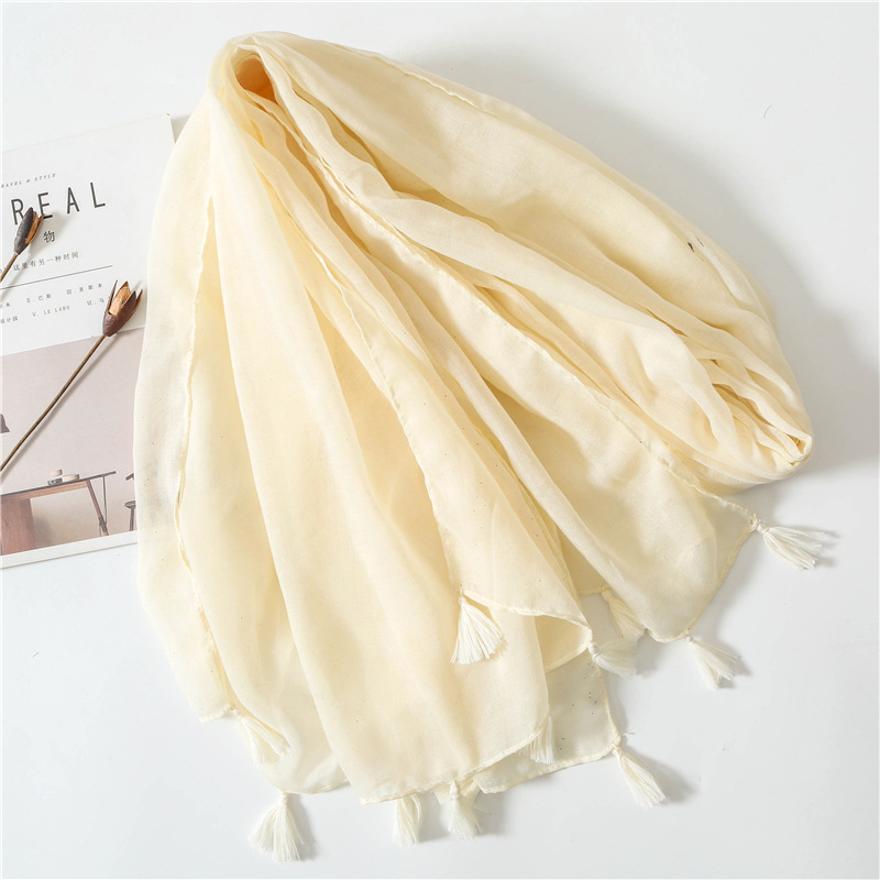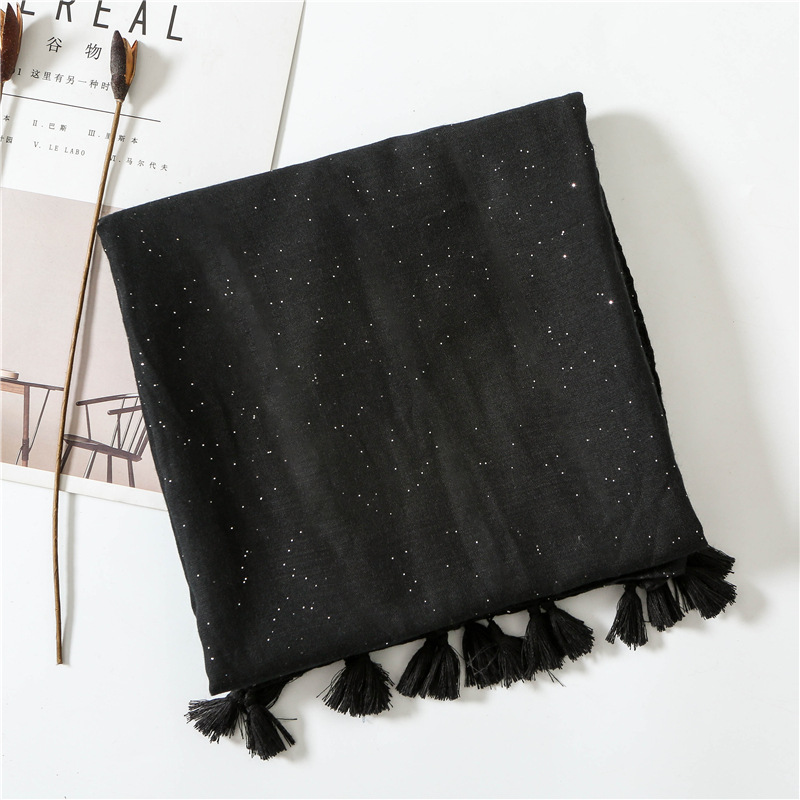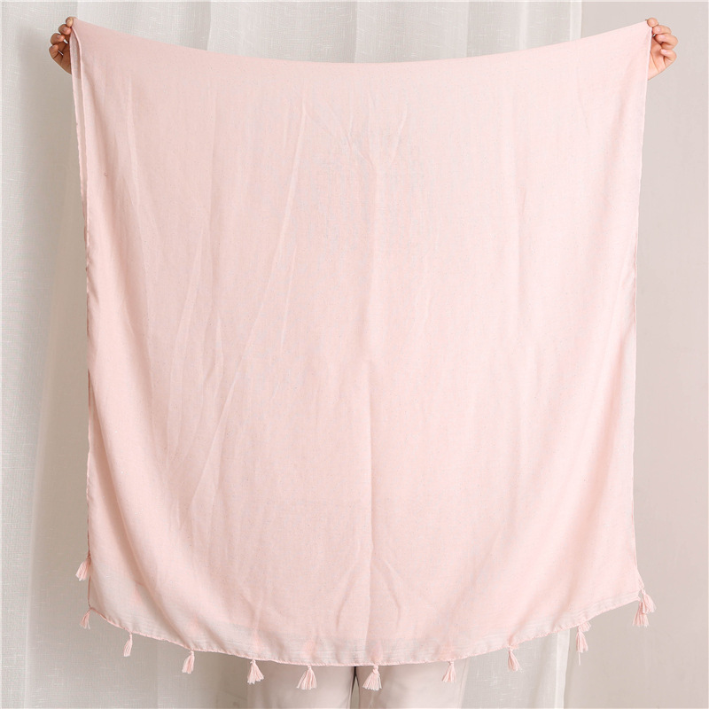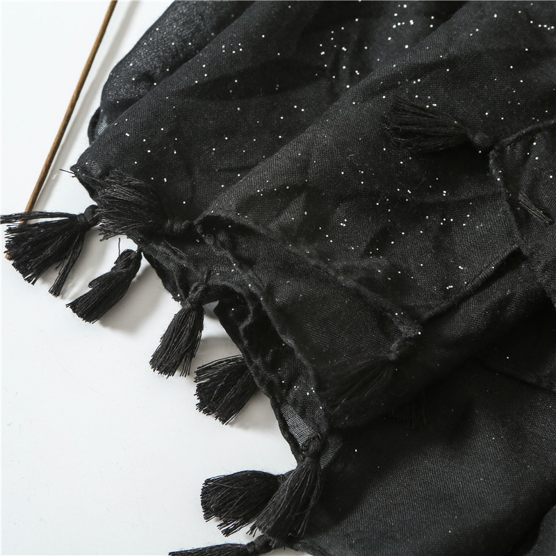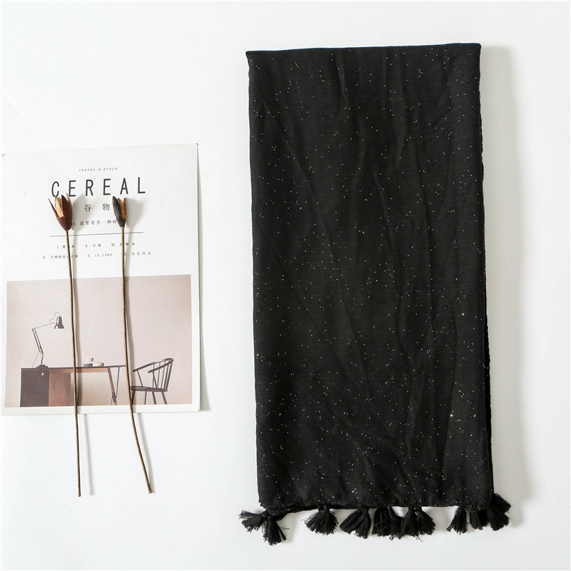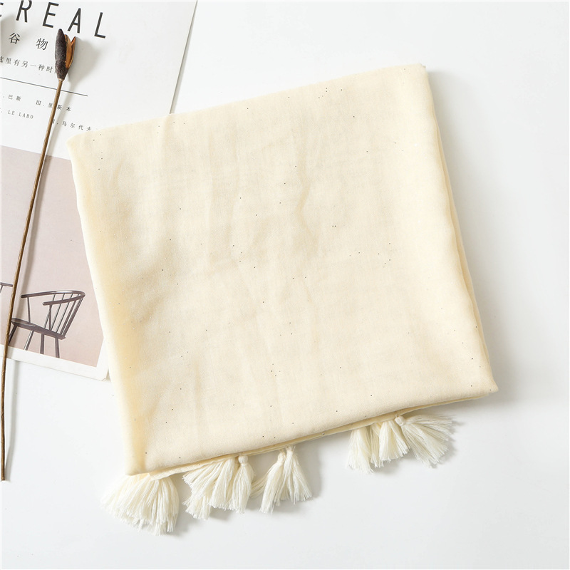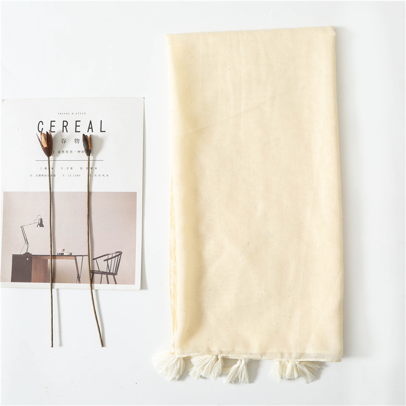 Beautiful monochrome color shiny Sprinkle tassel cotton scarf sunscreen