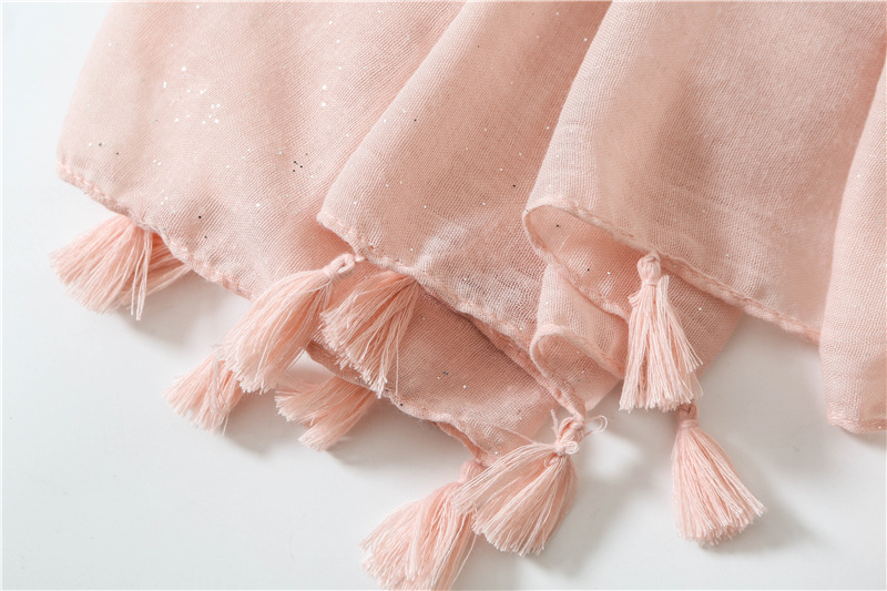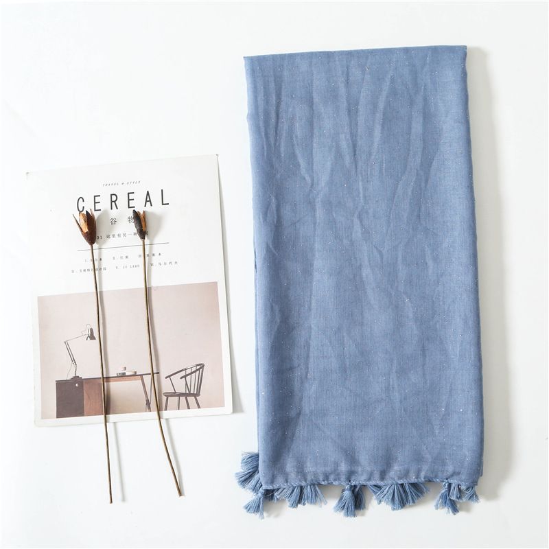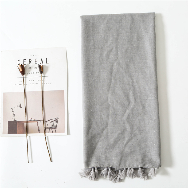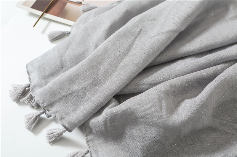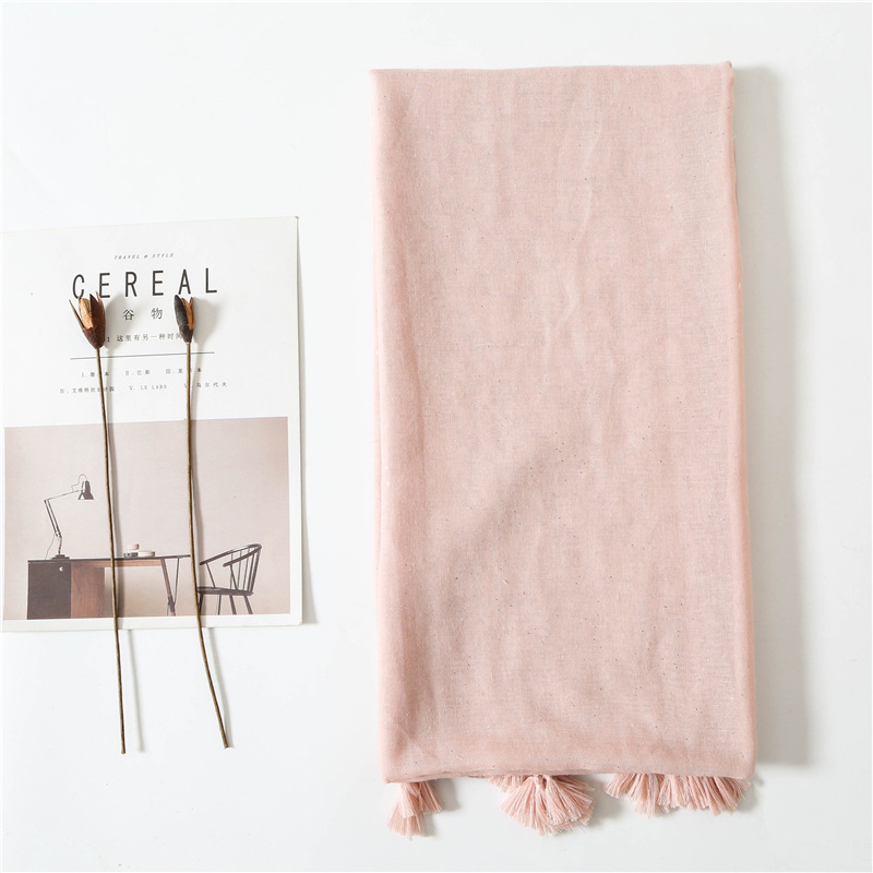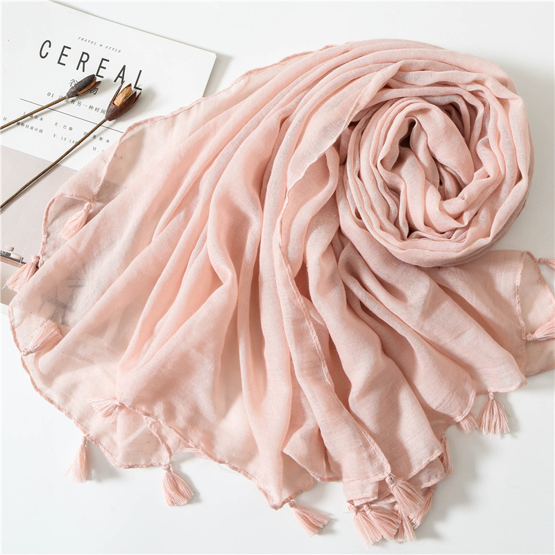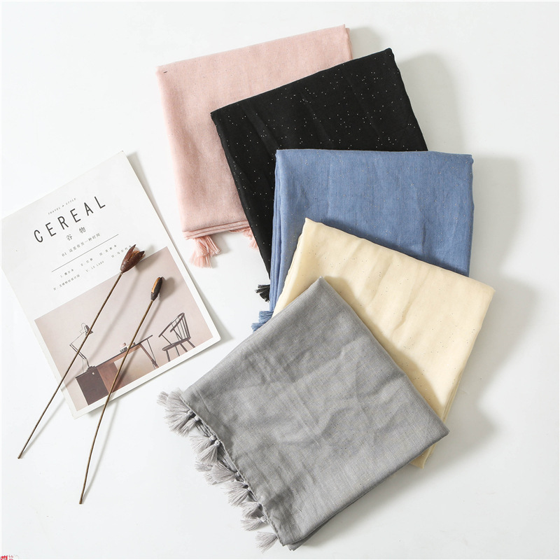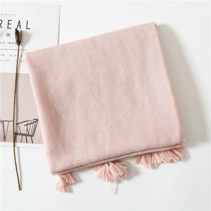 Beautiful monochrome color shiny Sprinkle tassel cotton scarf sunscreen