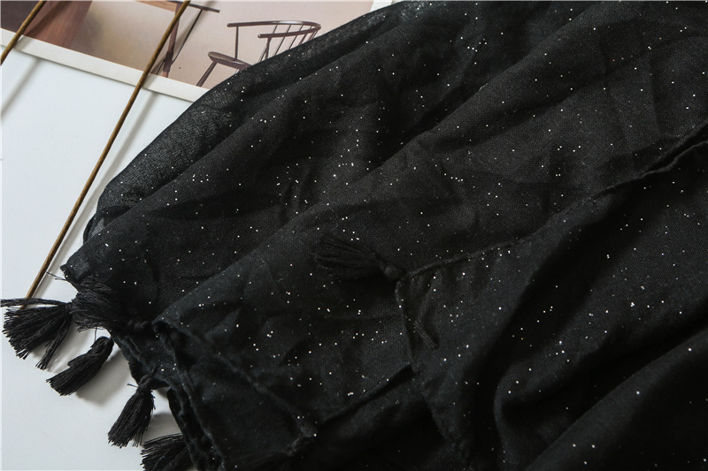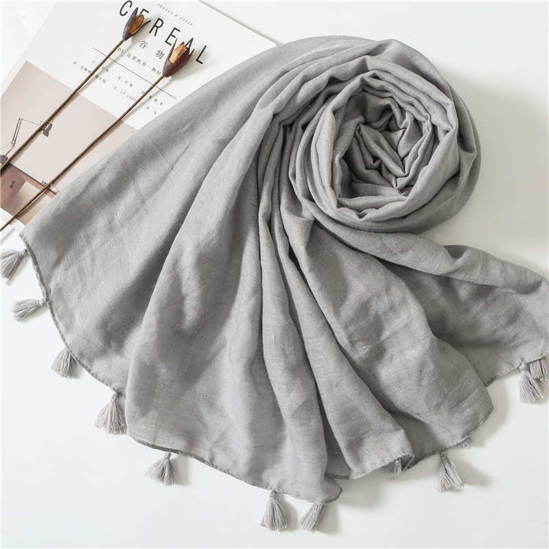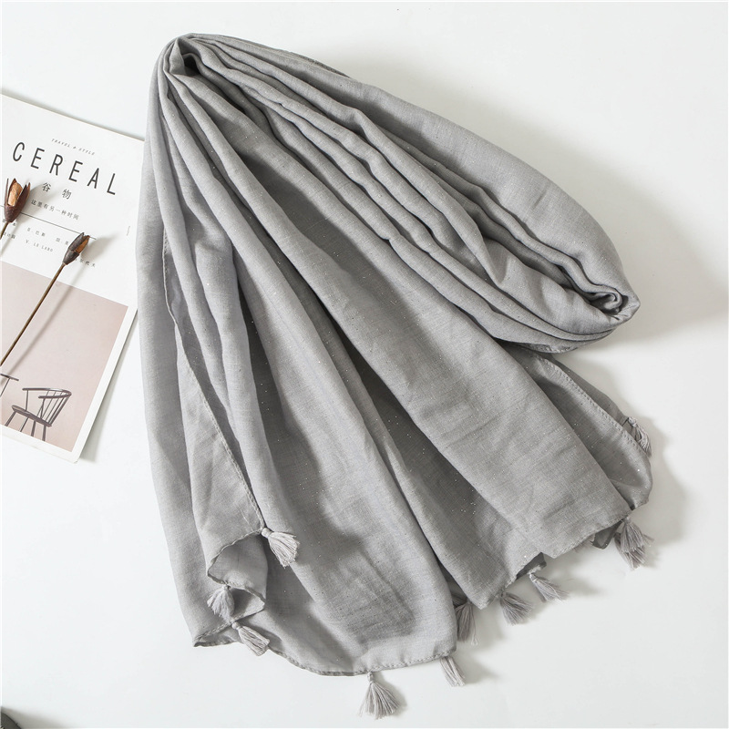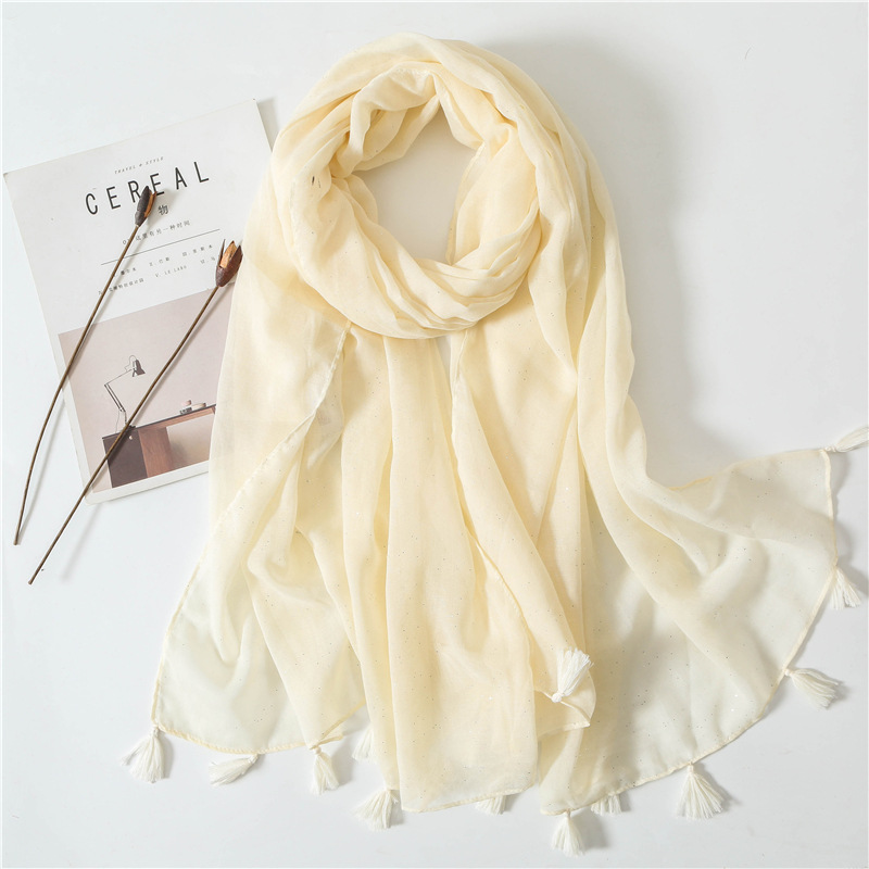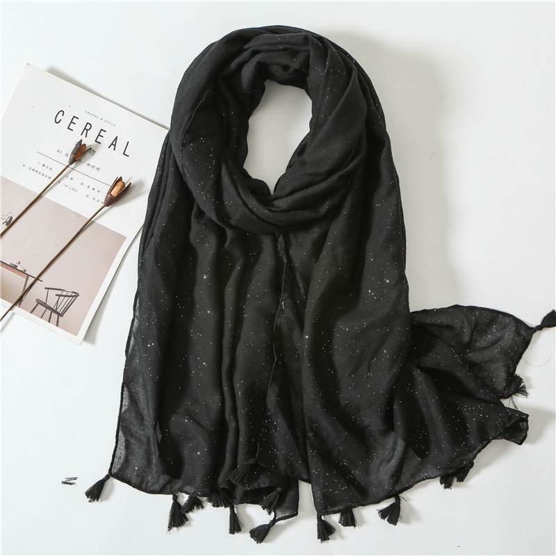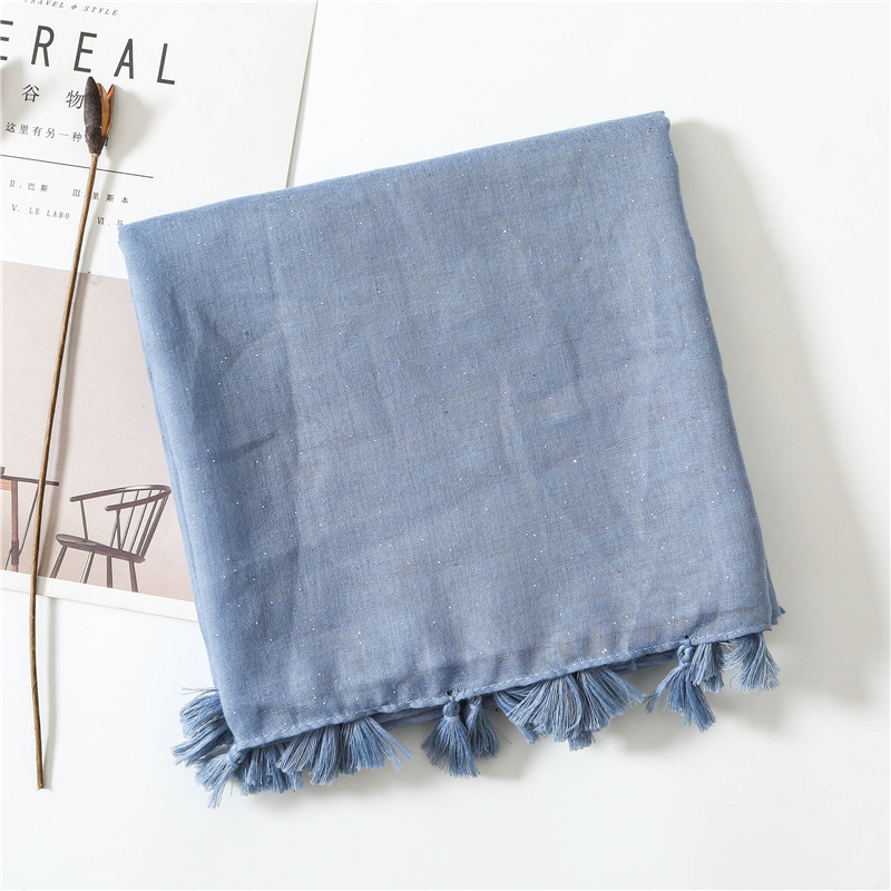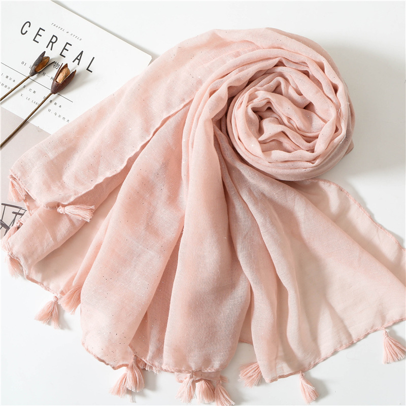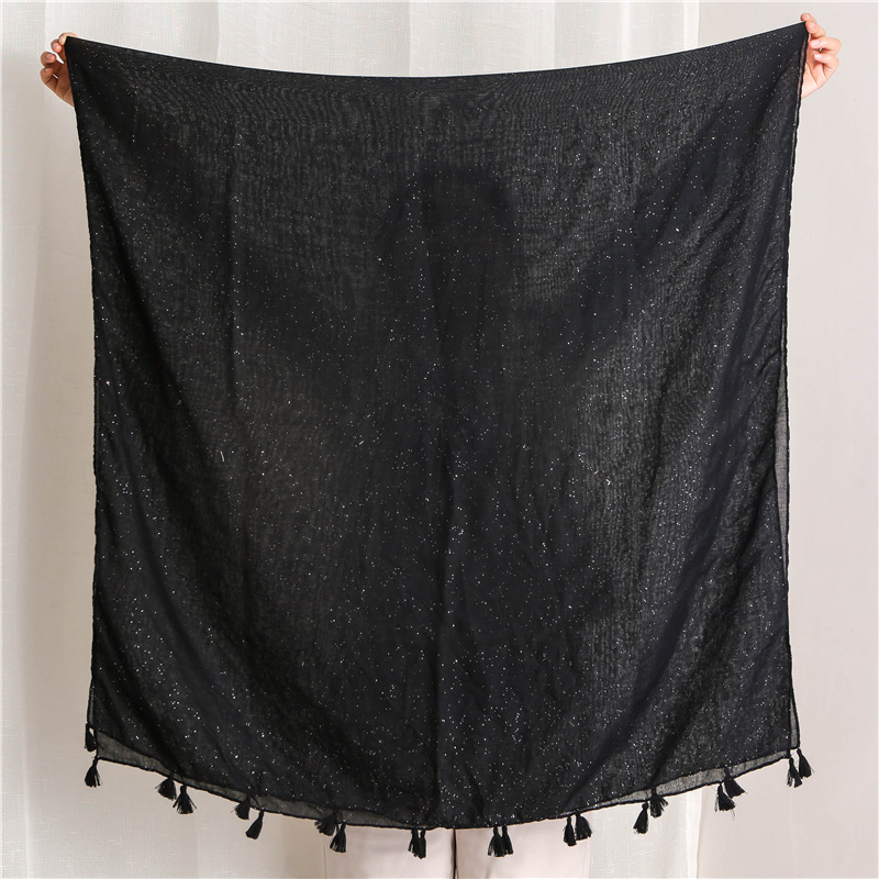 Beautiful monochrome color shiny Sprinkle tassel cotton scarf sunscreen