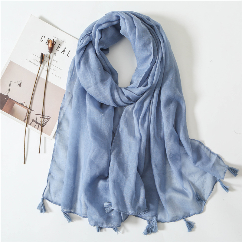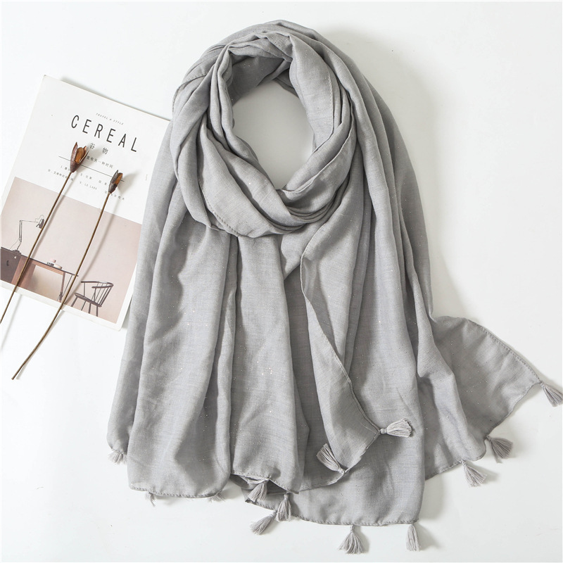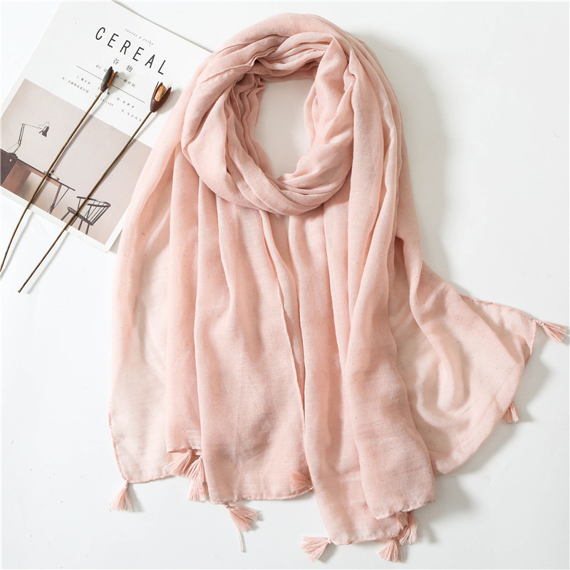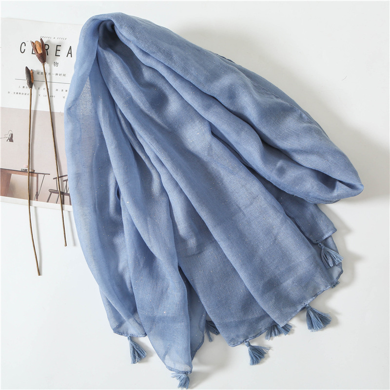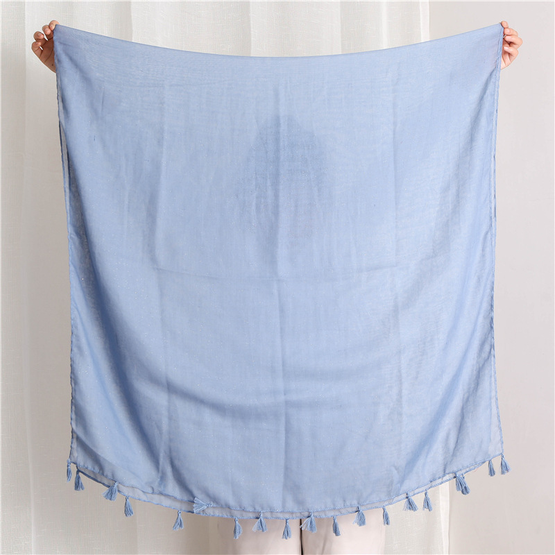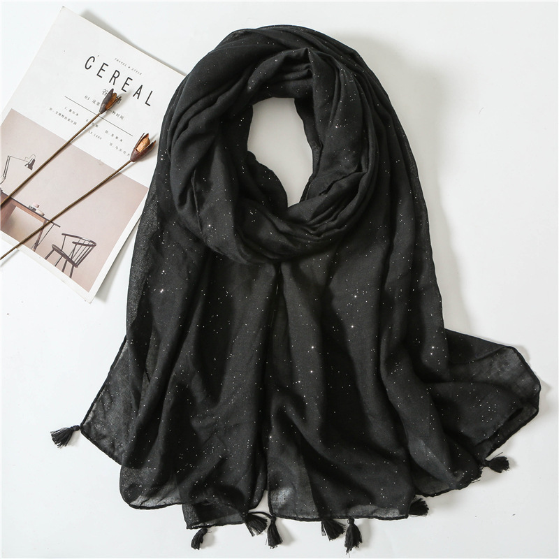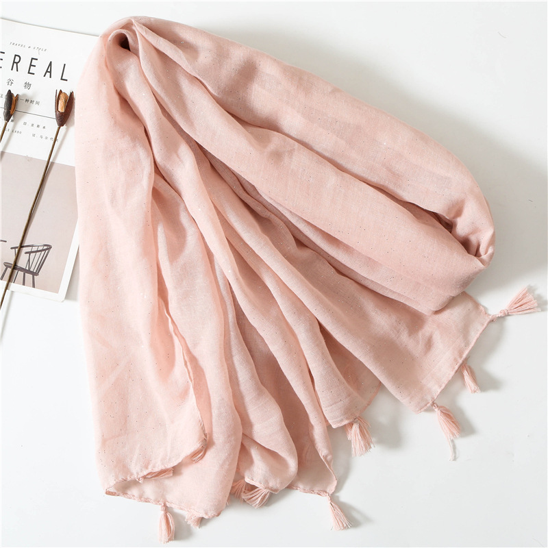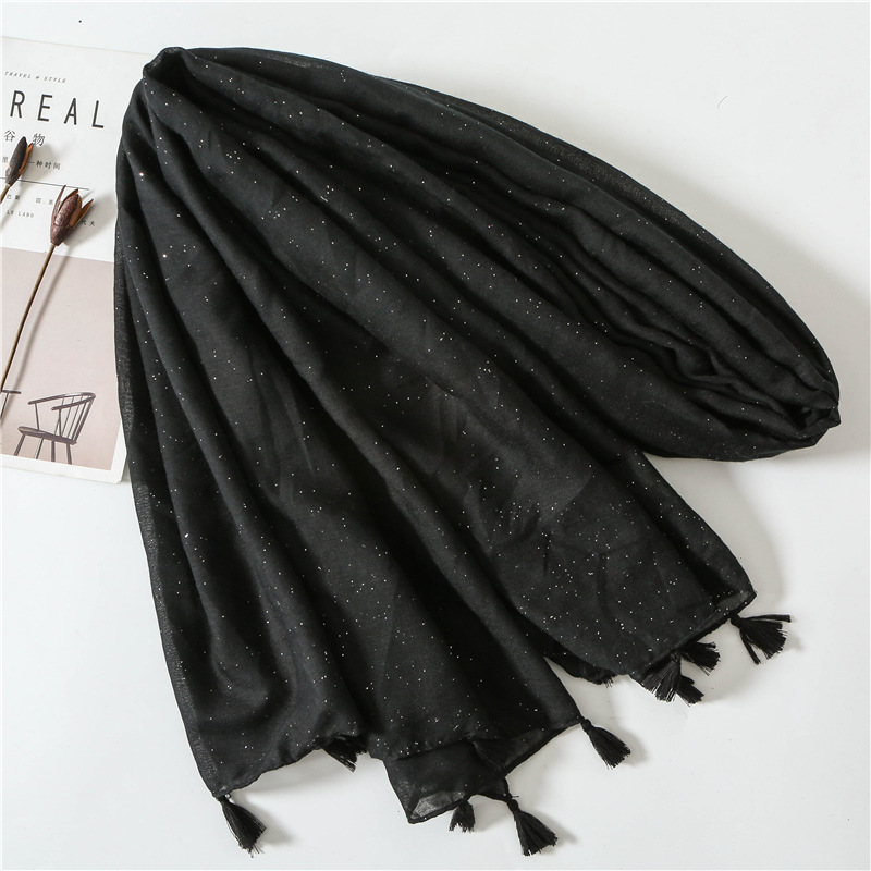 Beautiful monochrome color shiny Sprinkle tassel cotton scarf sunscreen