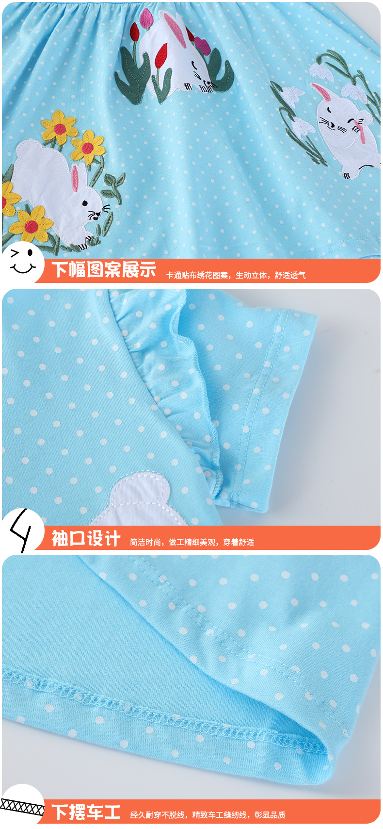 Cute embroidery rabbits kids girl casual Frock