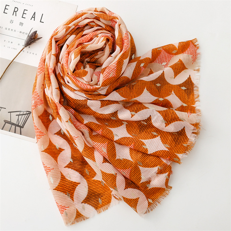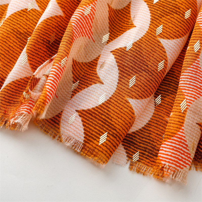 Gold stamping family wealth geometric raw edge shawls