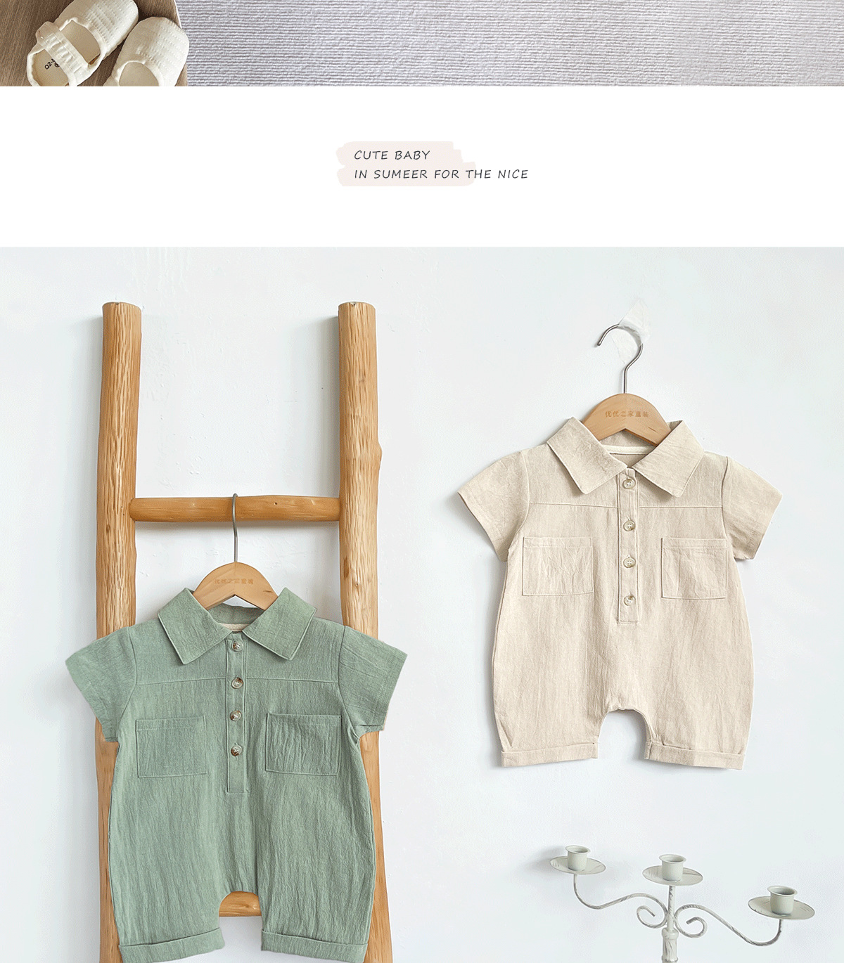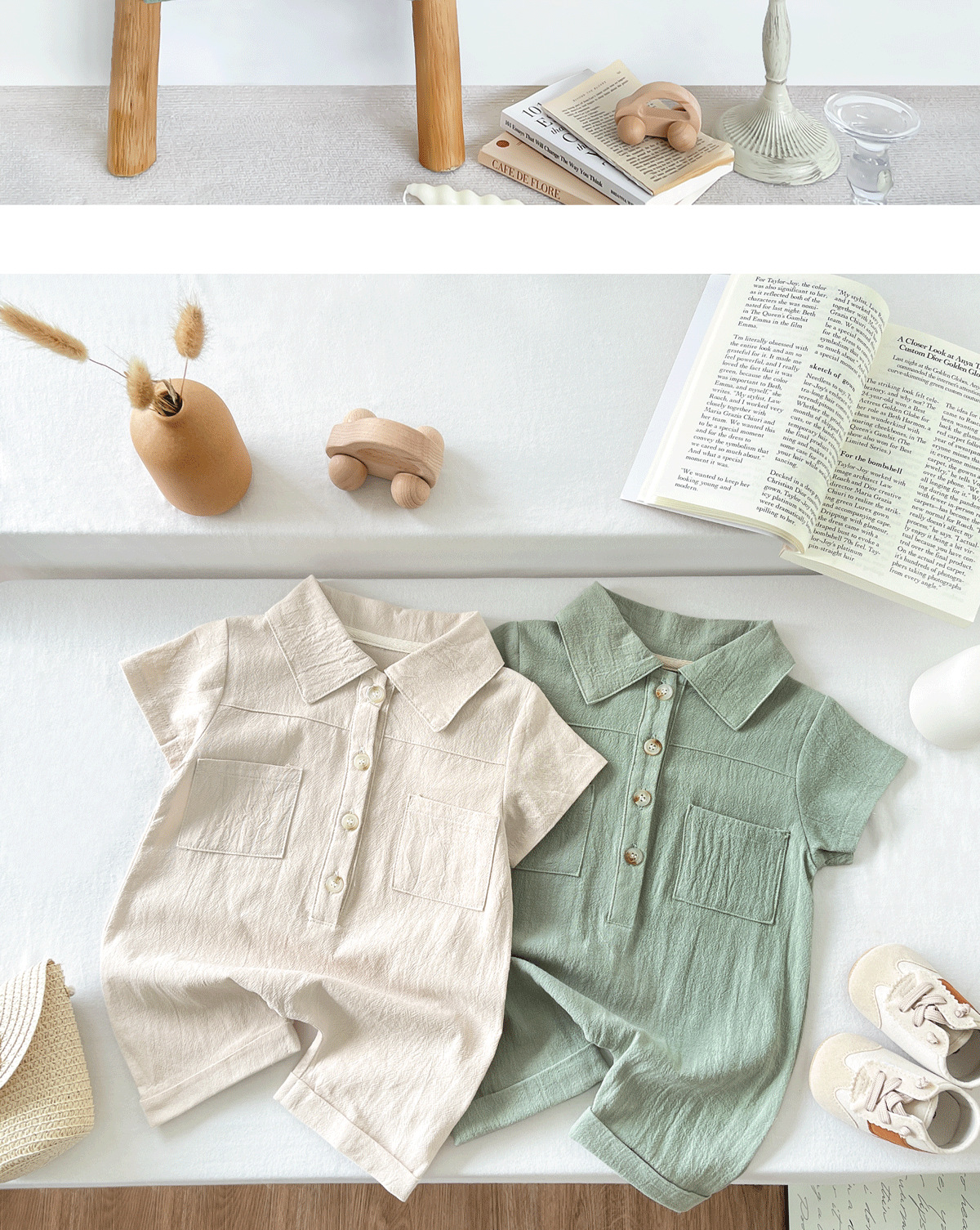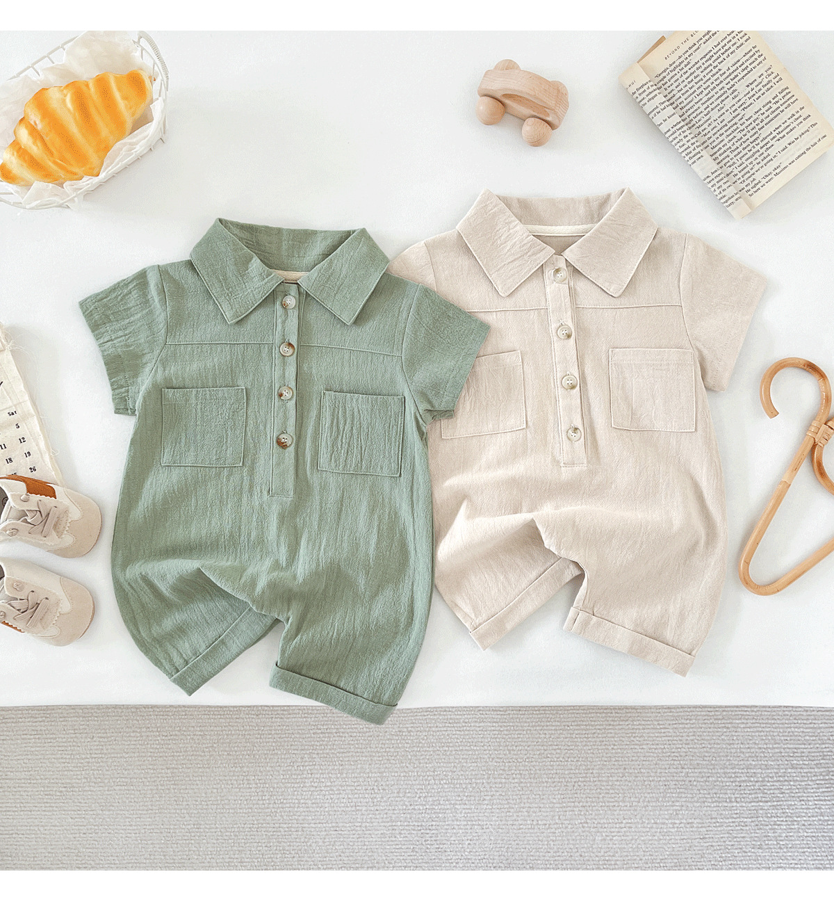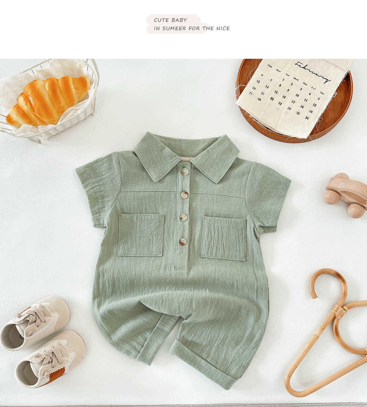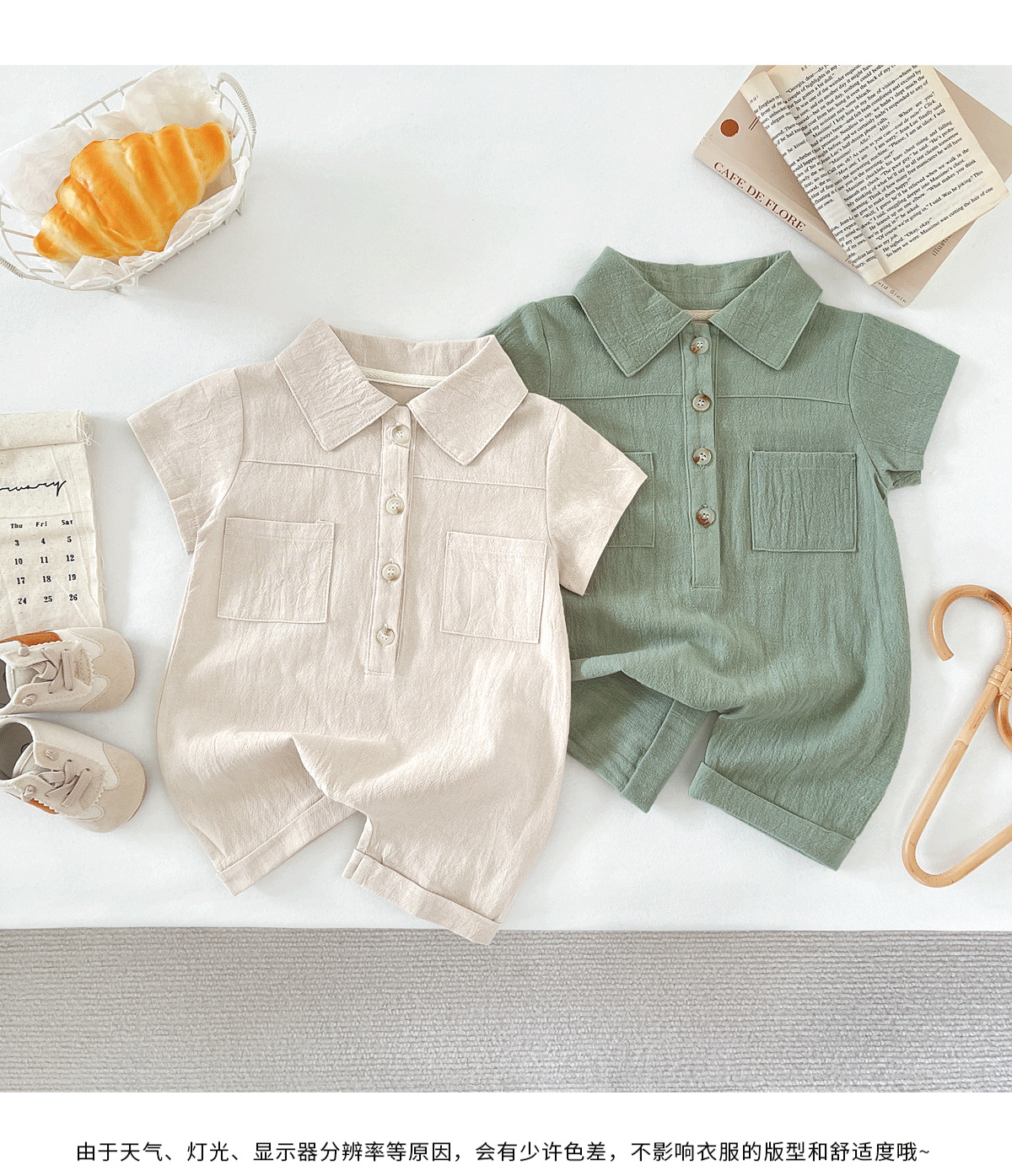 Infant thin POLO collar short-sleeved crawling jumpsuits for boys