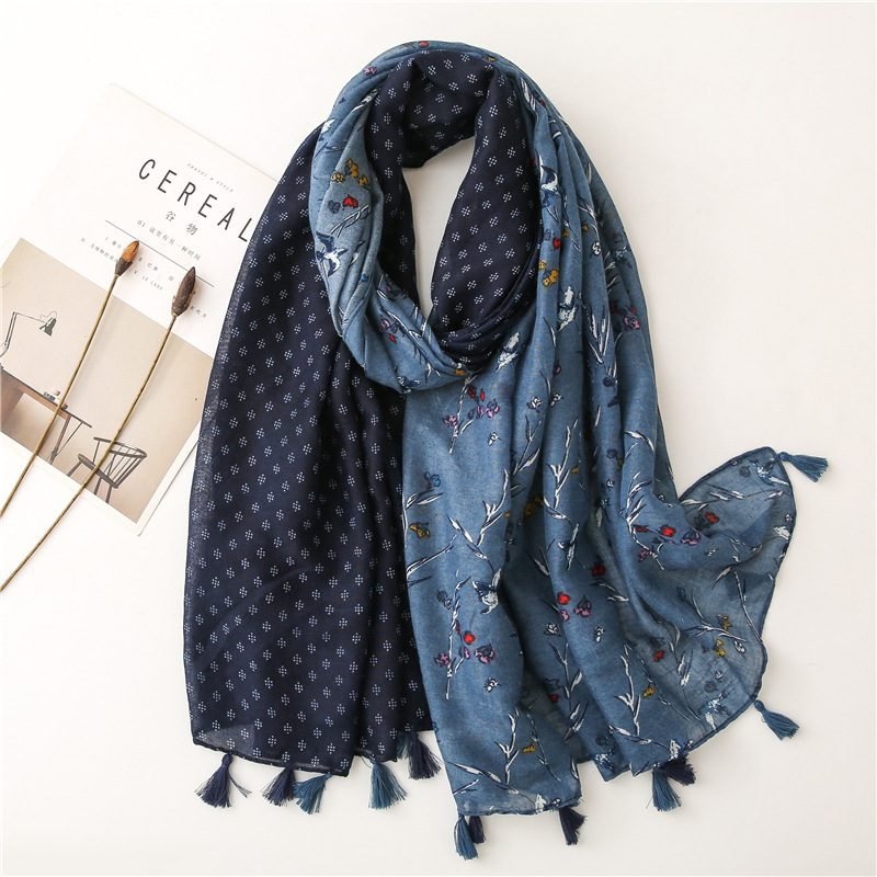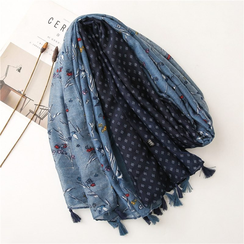 Literary blue small floral scarf travel seaside long sunscreen beach towel