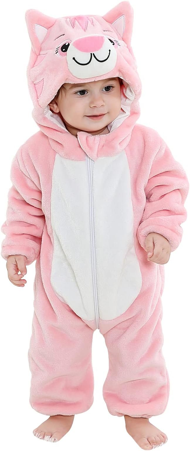✔ CREATIVE DESIGN : Features zipper closure and 3D hood design, double zipper from top and bottom, it goes all the way to the back for easy diaper changing, two little ears were sewn on both sides of the hood, like a real lovely animal, it looks especially cute! chic edging finish of the cuff to protect the baby skin from fraying, every detail is designed for the baby, giving baby free space to grow up.