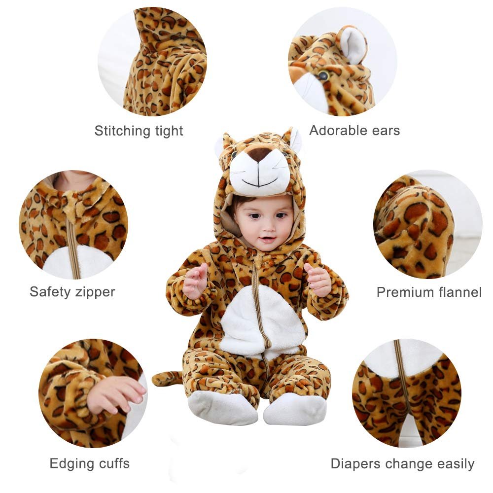 ✔ CREATIVE DESIGN : Features zipper closure and 3D hood design, double zipper from top and bottom, it goes all the way to the back for easy diaper changing, two little ears were sewn on both sides of the hood, like a real lovely animal, it looks especially cute! chic edging finish of the cuff to protect the baby skin from fraying, every detail is designed for the baby, giving baby free space to grow up.