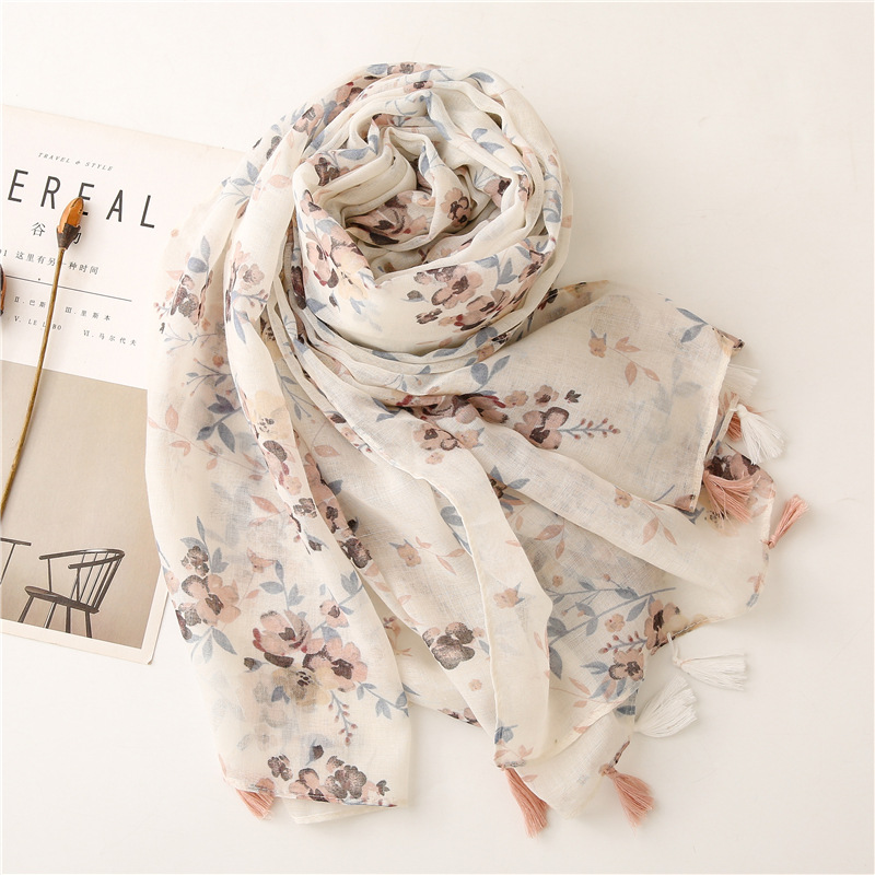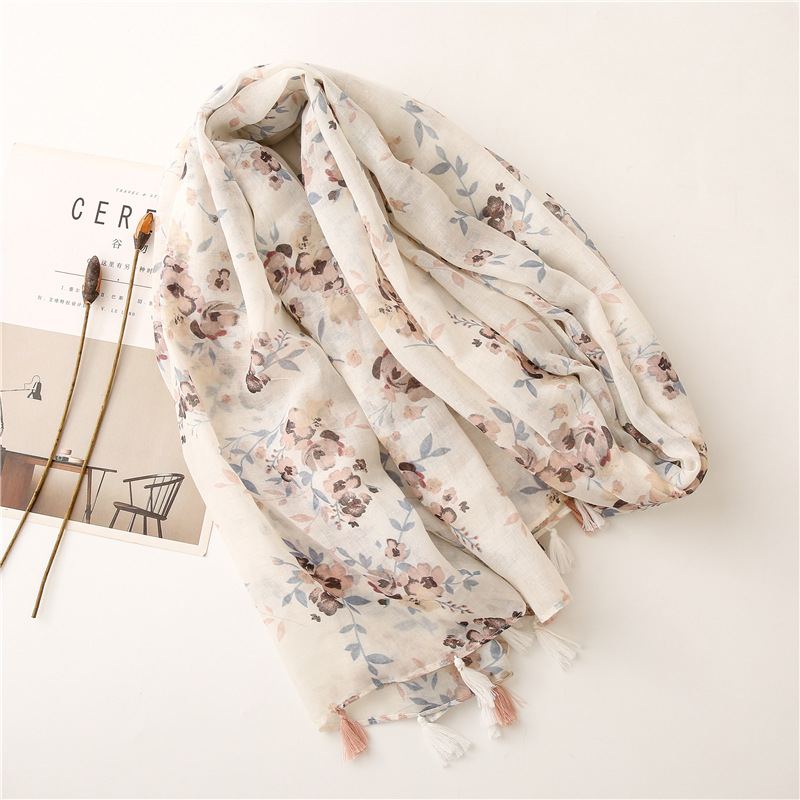 Be the first to review “Soft Bali yarn cotton and linen feel scarf white small flower fashion decoration travel sunscreen shawl silk scarf female” Cancel reply