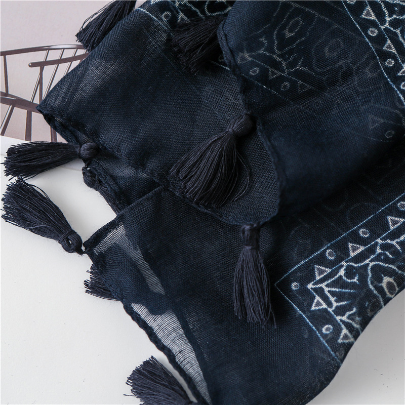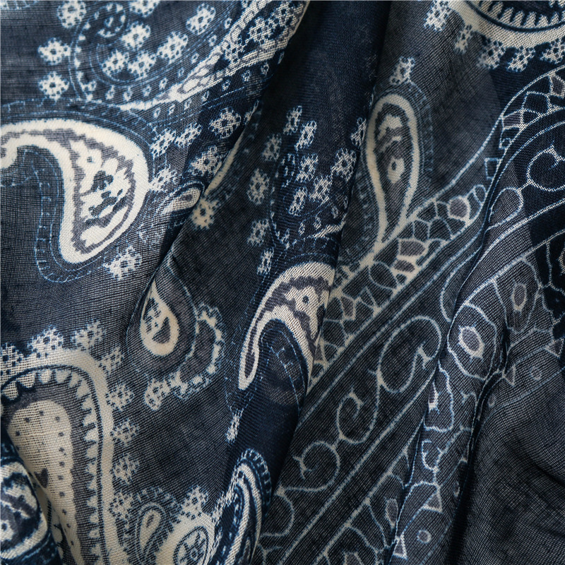 Soft skin-friendly navy blue old cashew flower scarf shawl