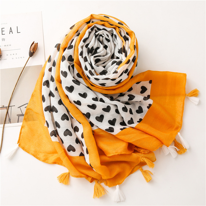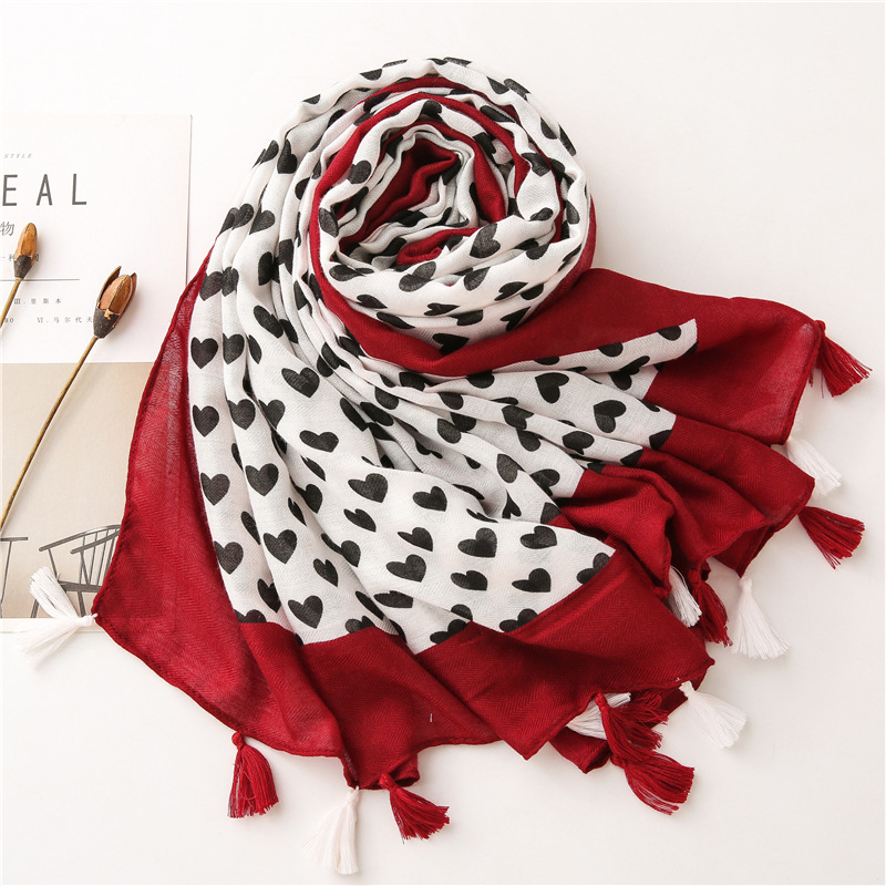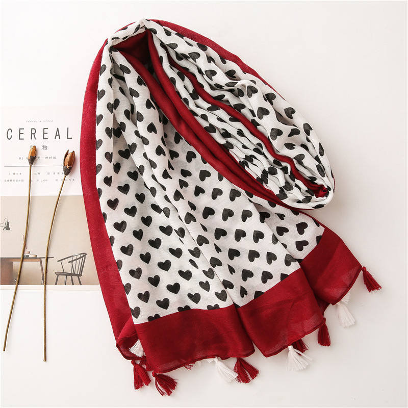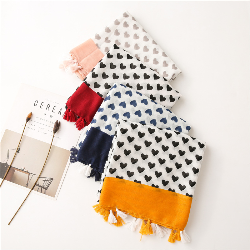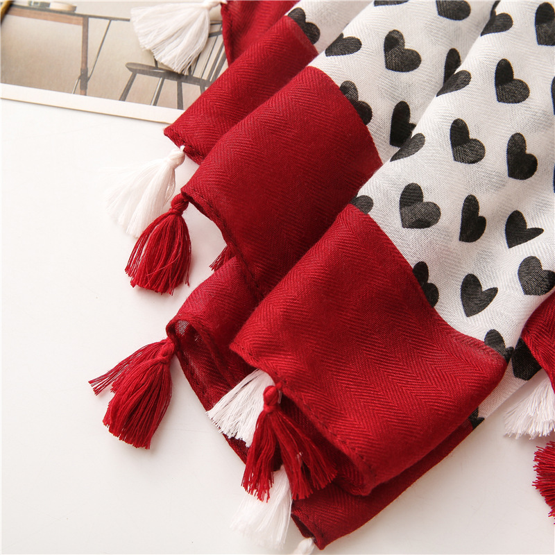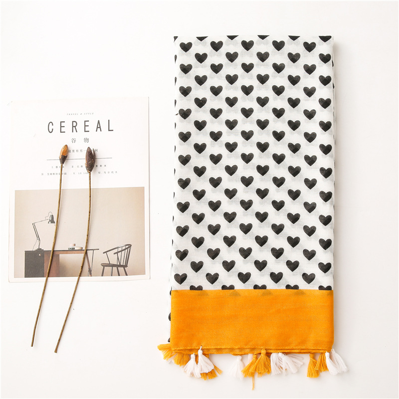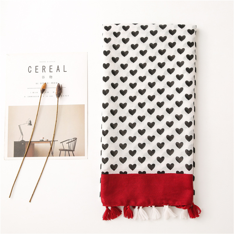 Solid color Border Black love heart literary versatile tassels stole