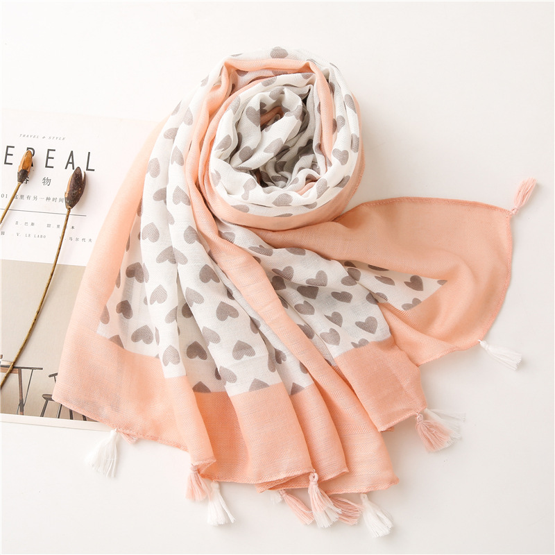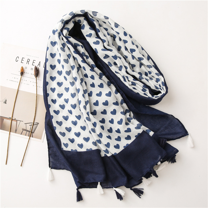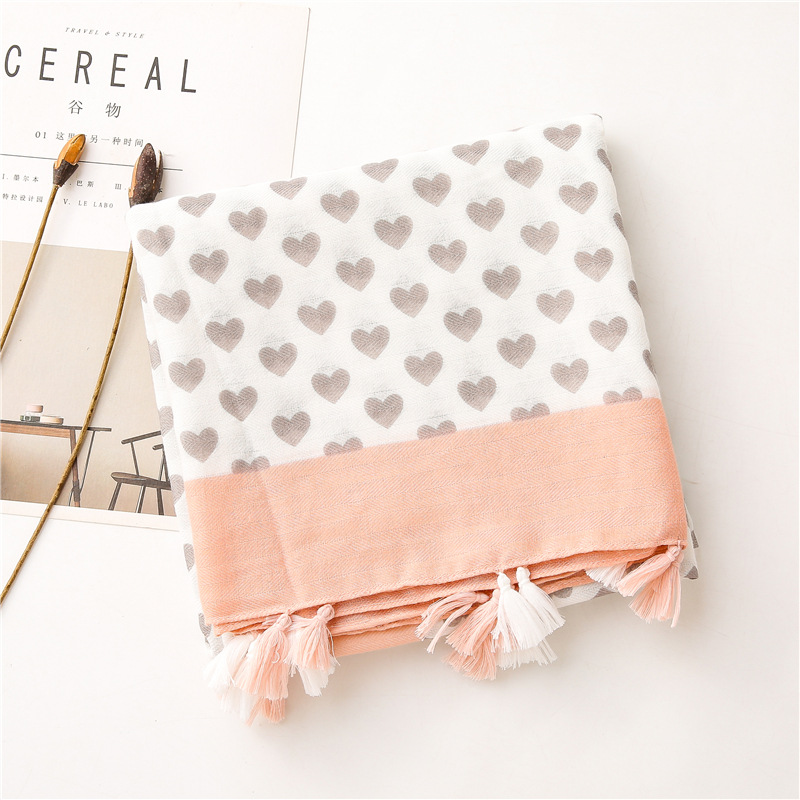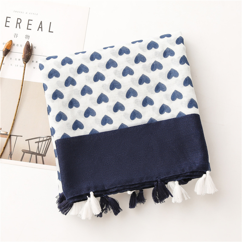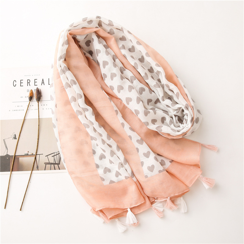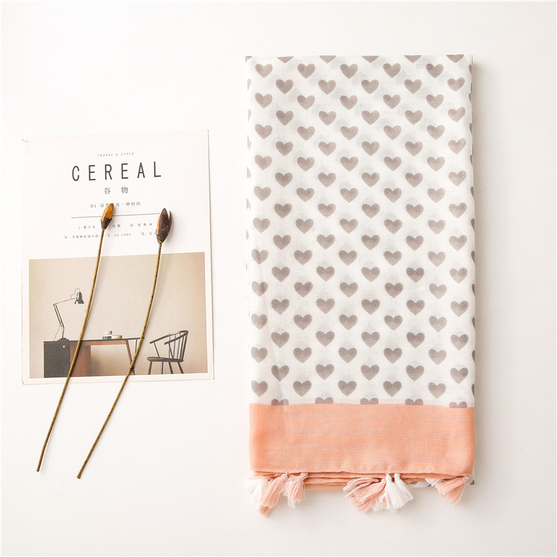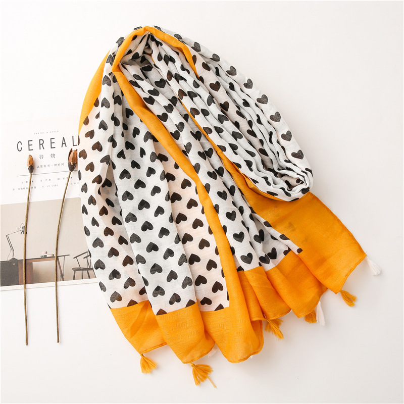 Solid color Border Black love heart literary versatile tassels stole