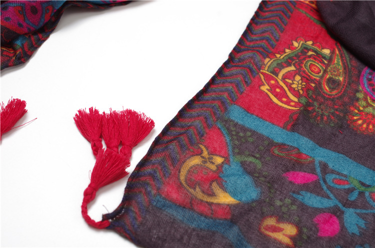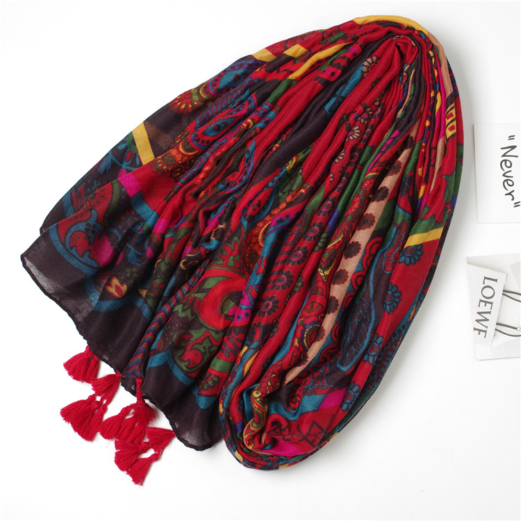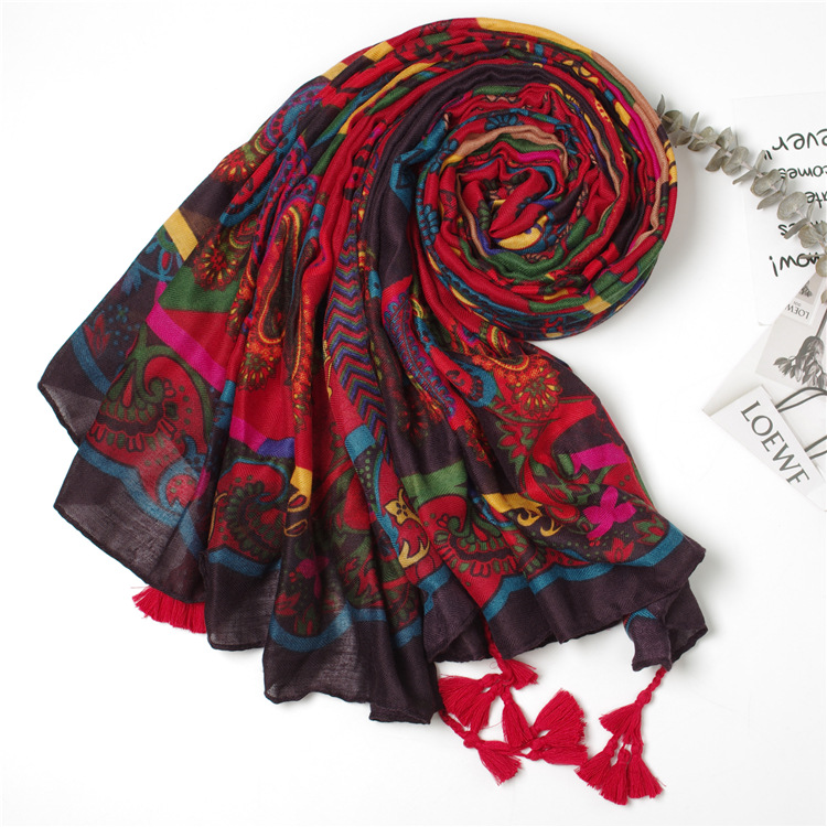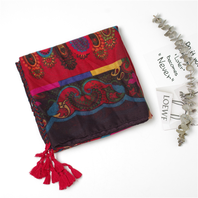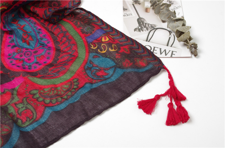 Spring and autumn cashew flower cotton linen large square Beach warm scarf