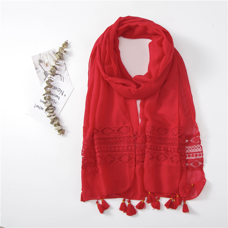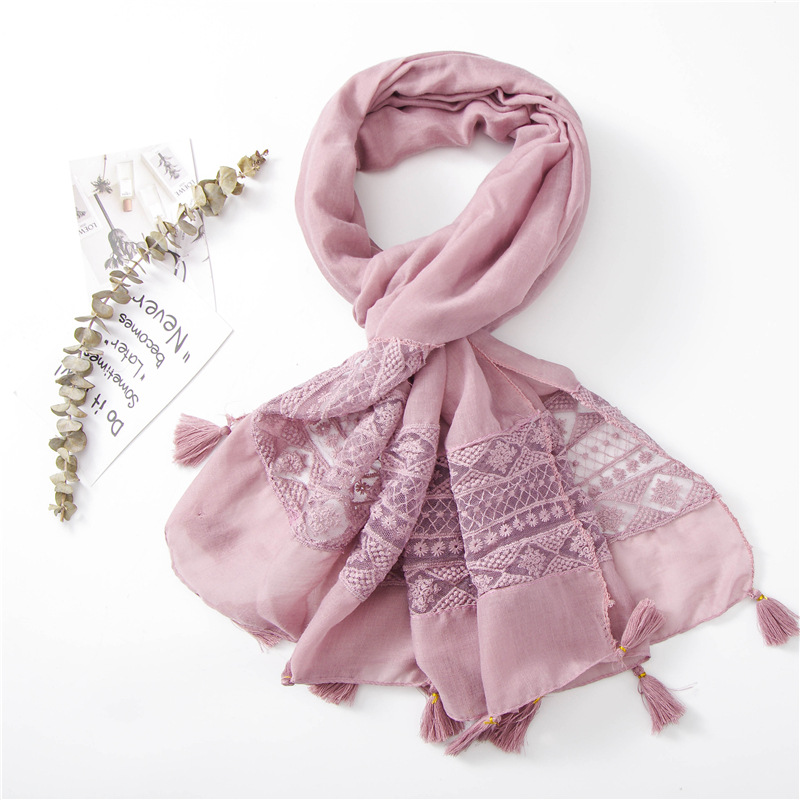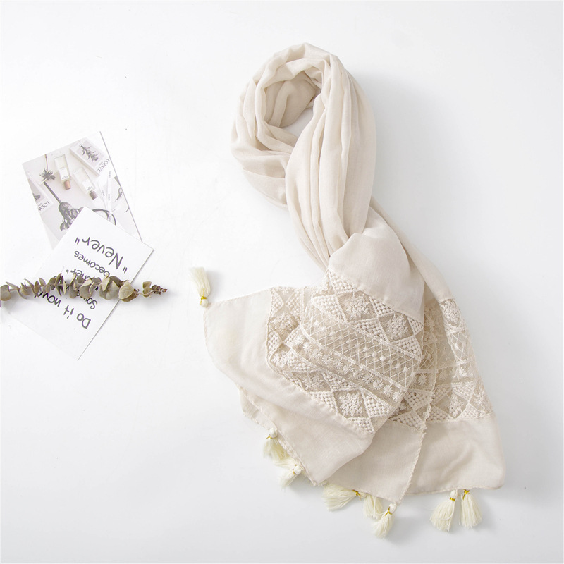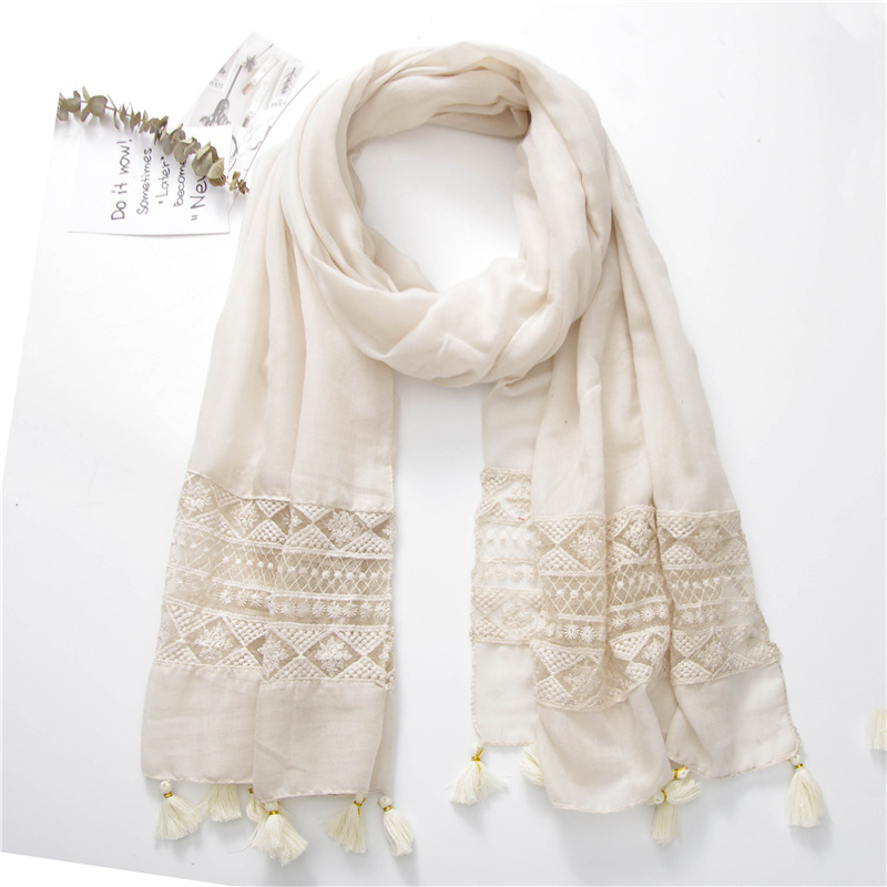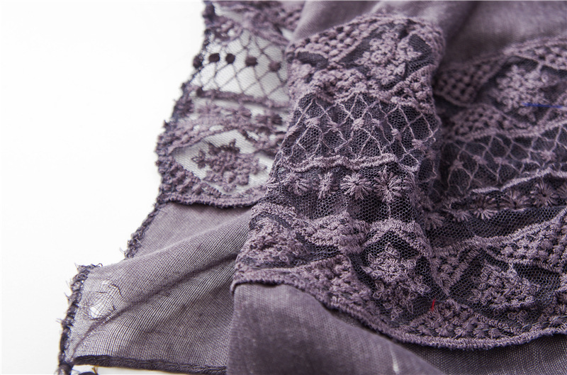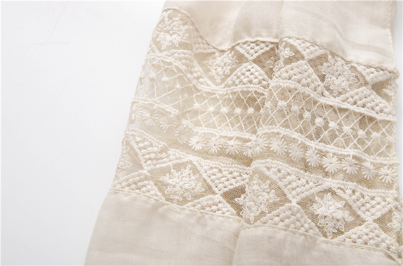 Summer Solid Colors Elegant Embroidery Lace Splicing Stole