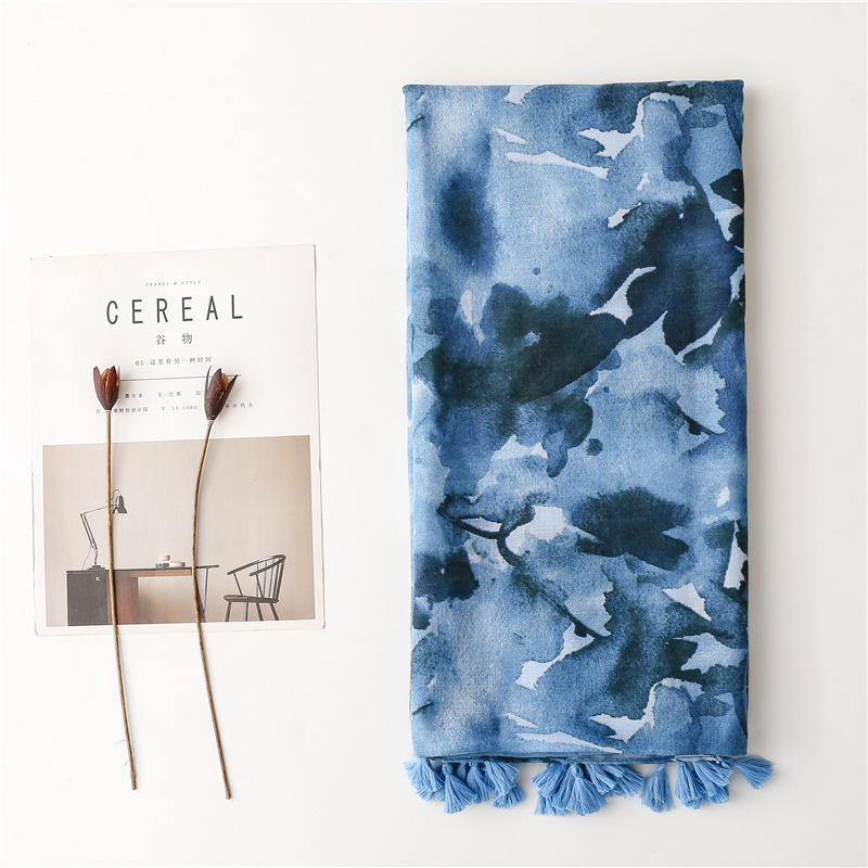 Summer vacation sun protection scarf Bohemian ink painting stole