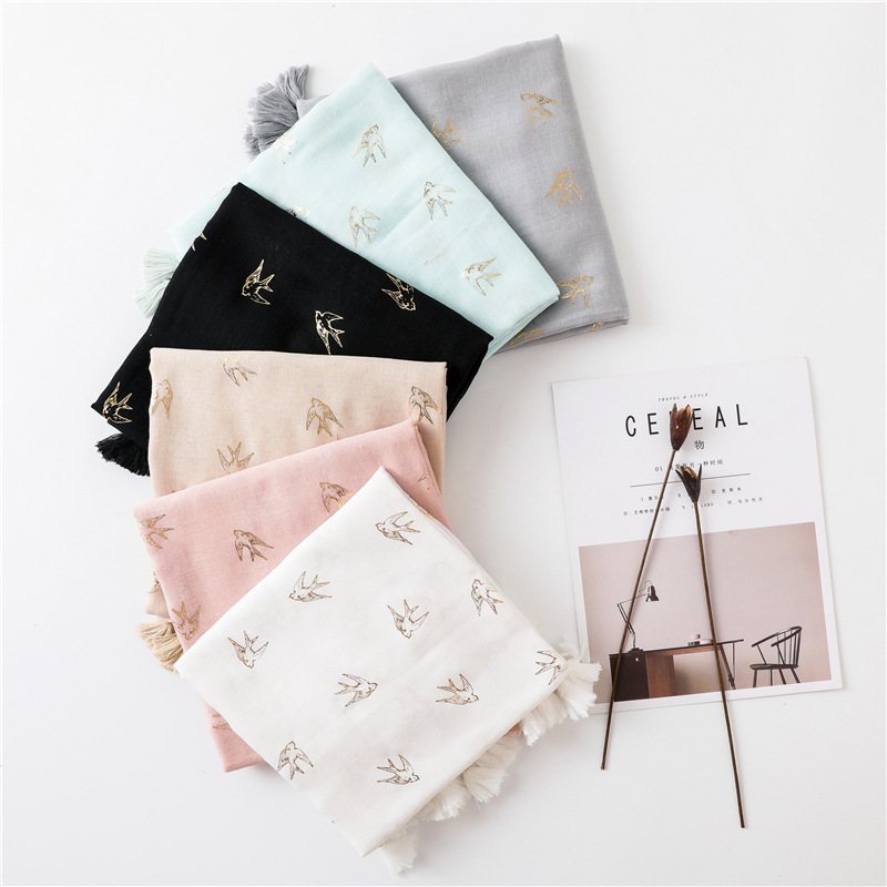 Swallow gold stamping low-luxury solid color scarf