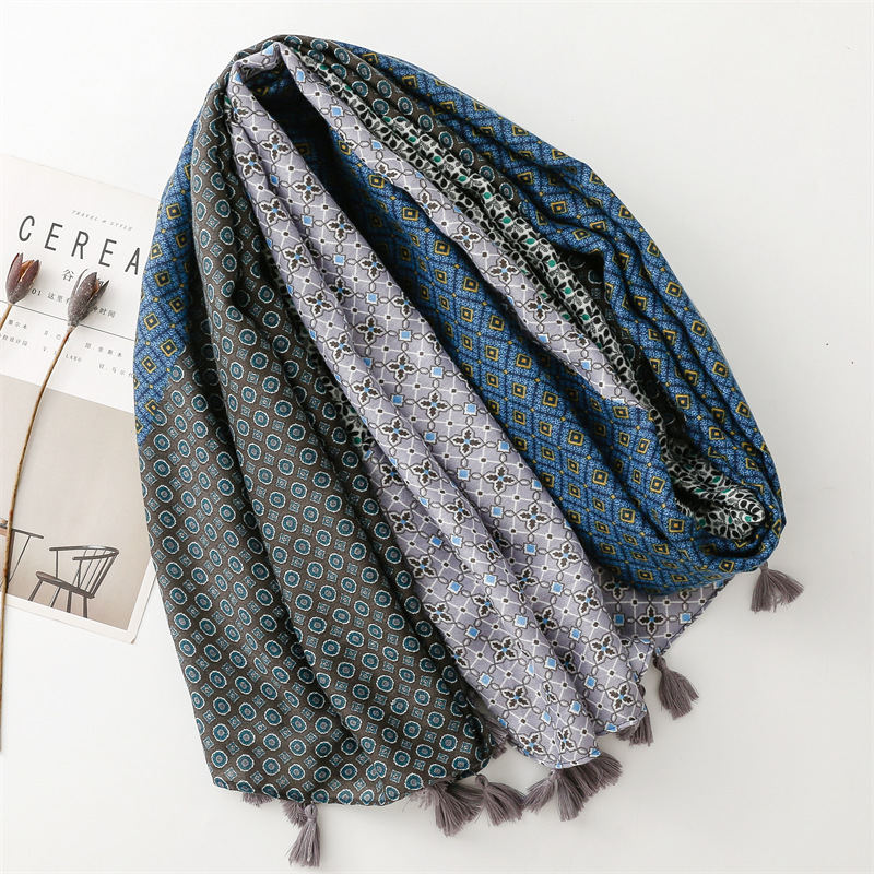 Be the first to review “Thickened and soft Twill dark color matching geometric tassel travel shawls” Cancel reply