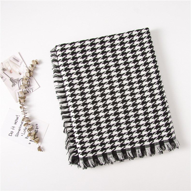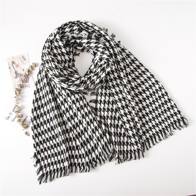Winter houndstooth Palestine black and White classic cashmere warm gradient neck muffler scarf