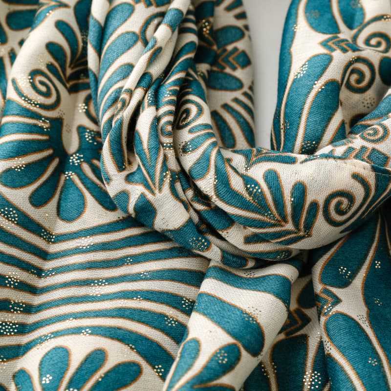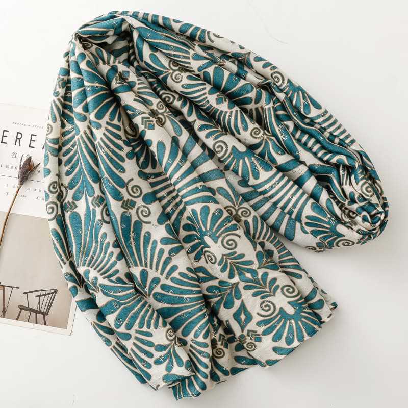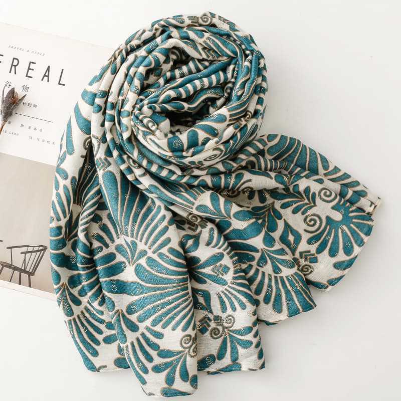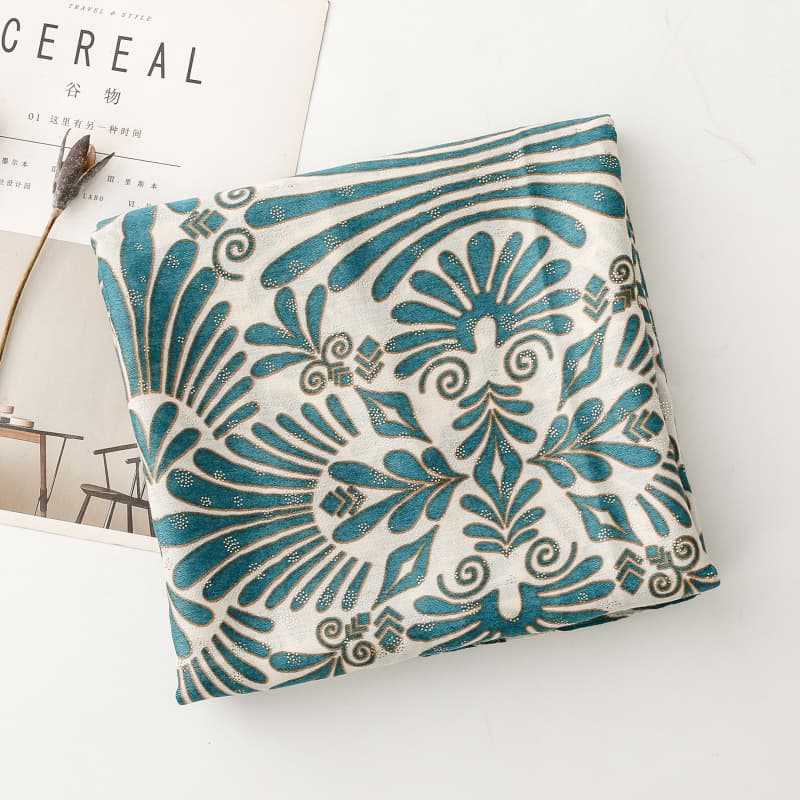 Be the first to review “Winter linen scarf gold stamping flowers lake blue fur edge shawl ladies” Cancel reply